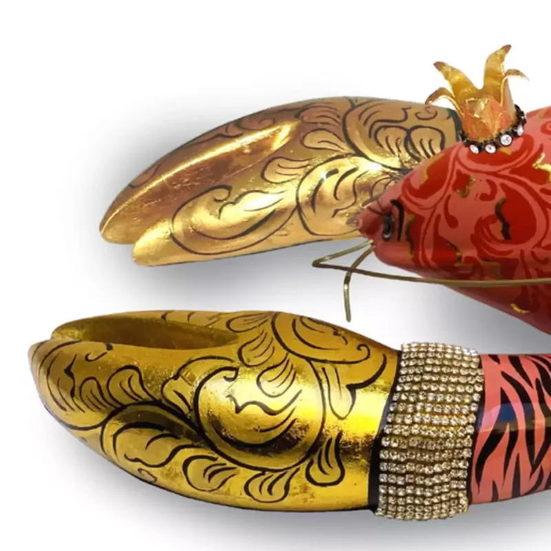 ✔ Bold & Playful Design – With its orange-red color, golden claws, rhinestone accents, and golden crown, this lobster sculpture is an eye-catching decorative piece that will stand out in any room.