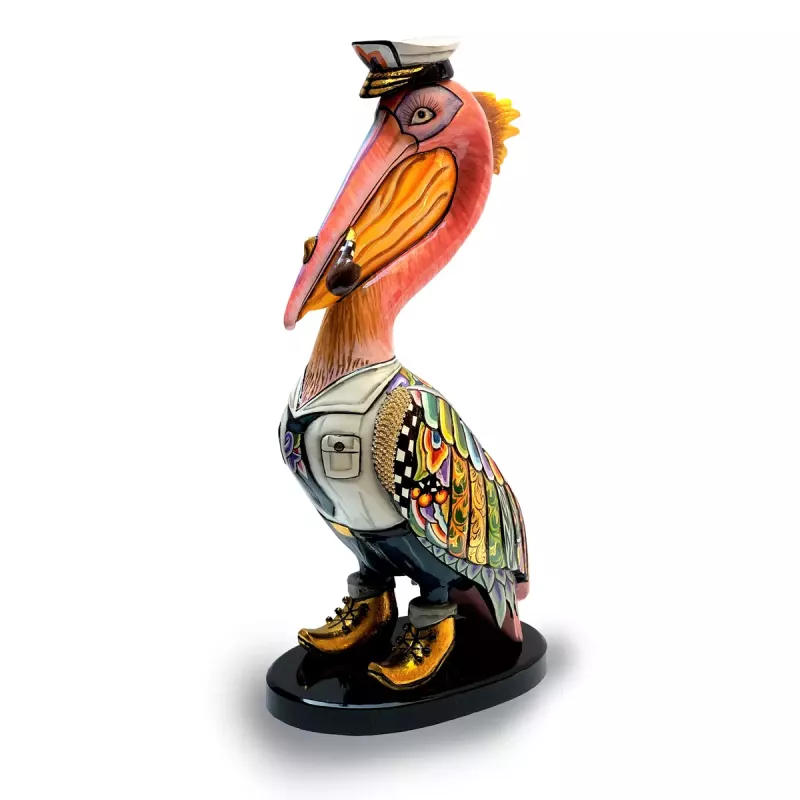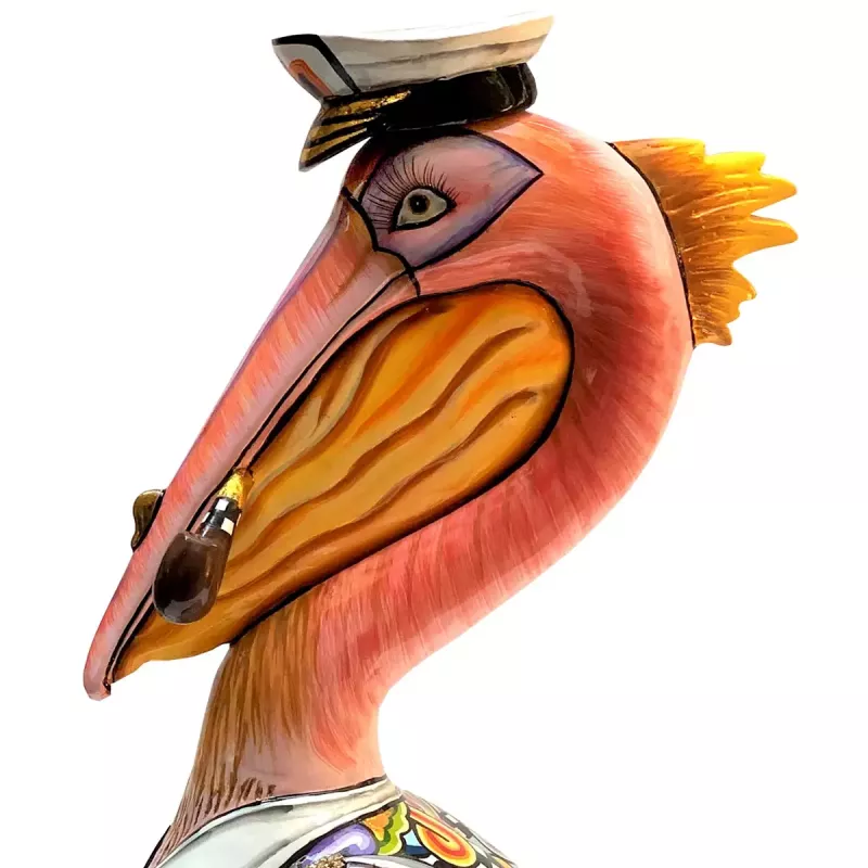 Vibrant & Unique Design: The colourful pelican is designed with rainbow colours and accented with golden boots, a sailor’s cap, and a pipe. These playful details make it a delightful piece for those who appreciate quirky, artistic designs that stand out in any room.