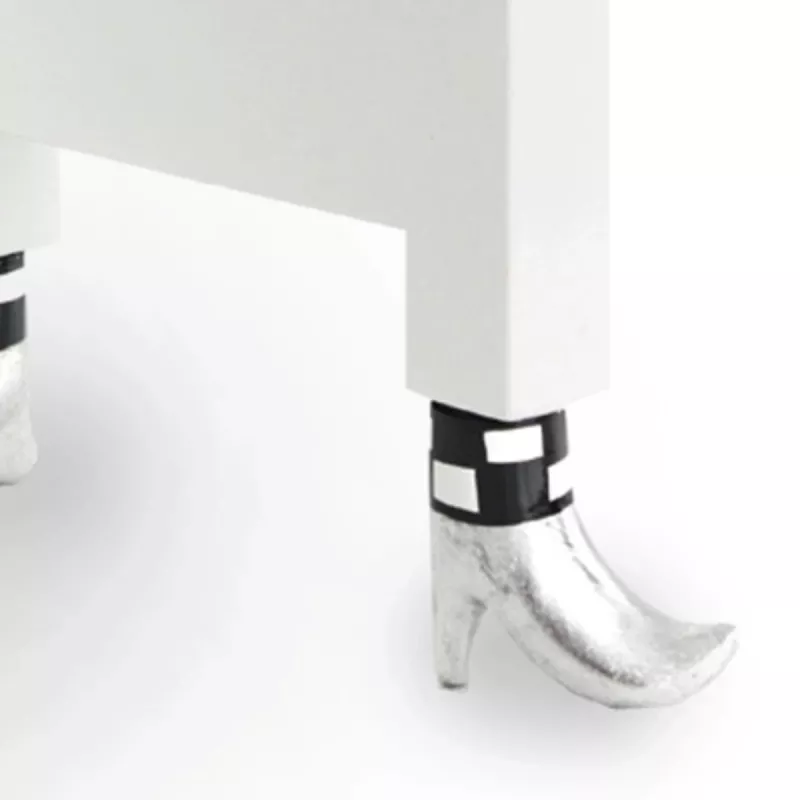 ✔ Iconic Silver Shoes Base – The stool stands on silver high-heeled shoes, a signature detail that adds an extra touch of luxury and playfulness.