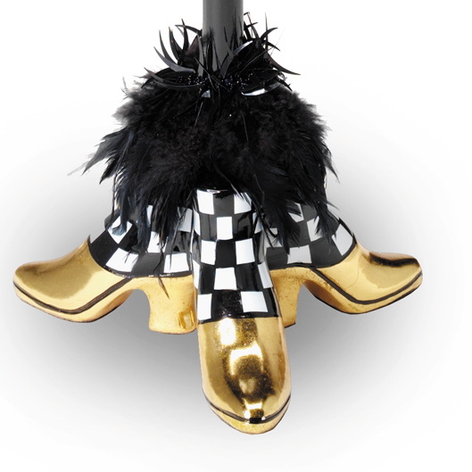 Design Features: Gold Shoes, Black Feather Collar, Black-Painted Metal Tripod