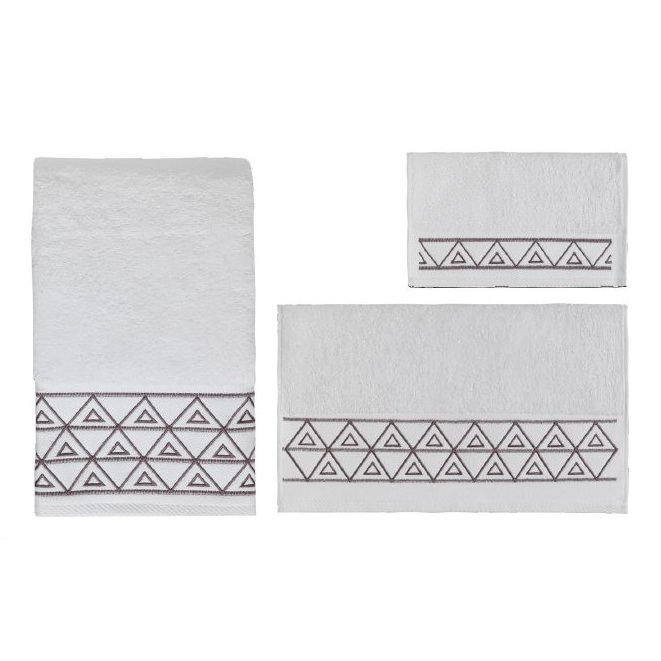 KHEOPS is a super soft 100% cotton towel 500 gr/m² from Sensei Maison. The towel with a stylish pyramid inspired embroidered pattern is available in white / greige & white / petrol in the sizes 30x50, 50x100 and 70x140 cm. It is tested and certified according to OEKO-TEX® Standard 100 and contains no hazardous substances for health or nature.