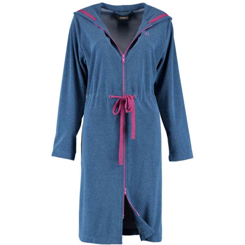 Cawö Active women's short hooded bathrobe with zipper 821-18