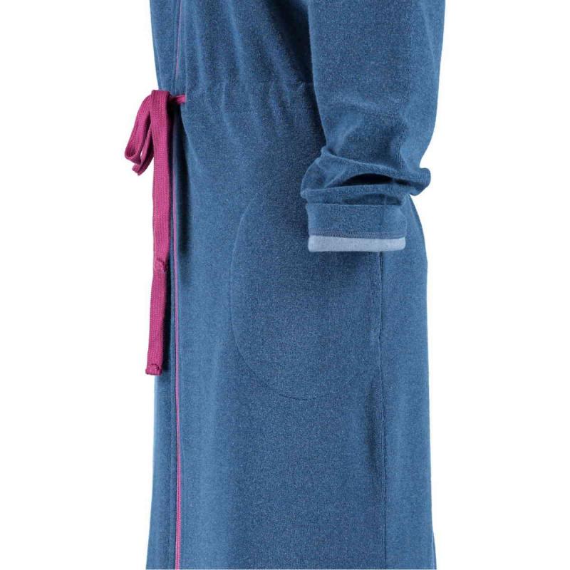 This sort soft women’s hooded bathrobe 821-18 from Cawö Active range convinces with a modern look and high quality. The bluemelange / beere colour terry robe has a practical zipper and skin-friendly cotton blend fabric to be soft against the skin. Cawö-terry is manufactured in Germany and tested according to Oeko-Tex Standard 100 without harmful level of harmful substances.