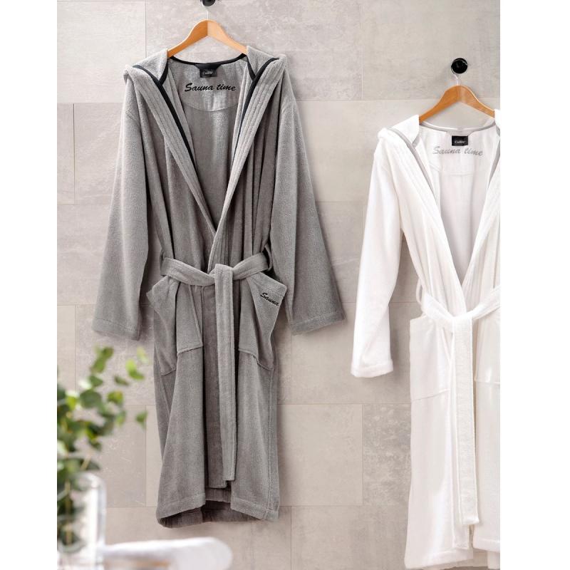 Experience relaxing hours in this cuddly soft women's bathrobe Sauna Time from Cawö. This bathrobe 832-70 in the colour stein with the appropriate name "Sauna Time" with a lovely hood is ideal for winter bath and relaxing time at sauna & wellness. The Cawö bathrobe is made of fluffy soft terry cloth quality made of 100% cotton. The robe is easy to clean and suitable for tumble drying Enjoy and recharge your batteries with cuddly soft quality! Combine with a matching sauna towel in the same series.