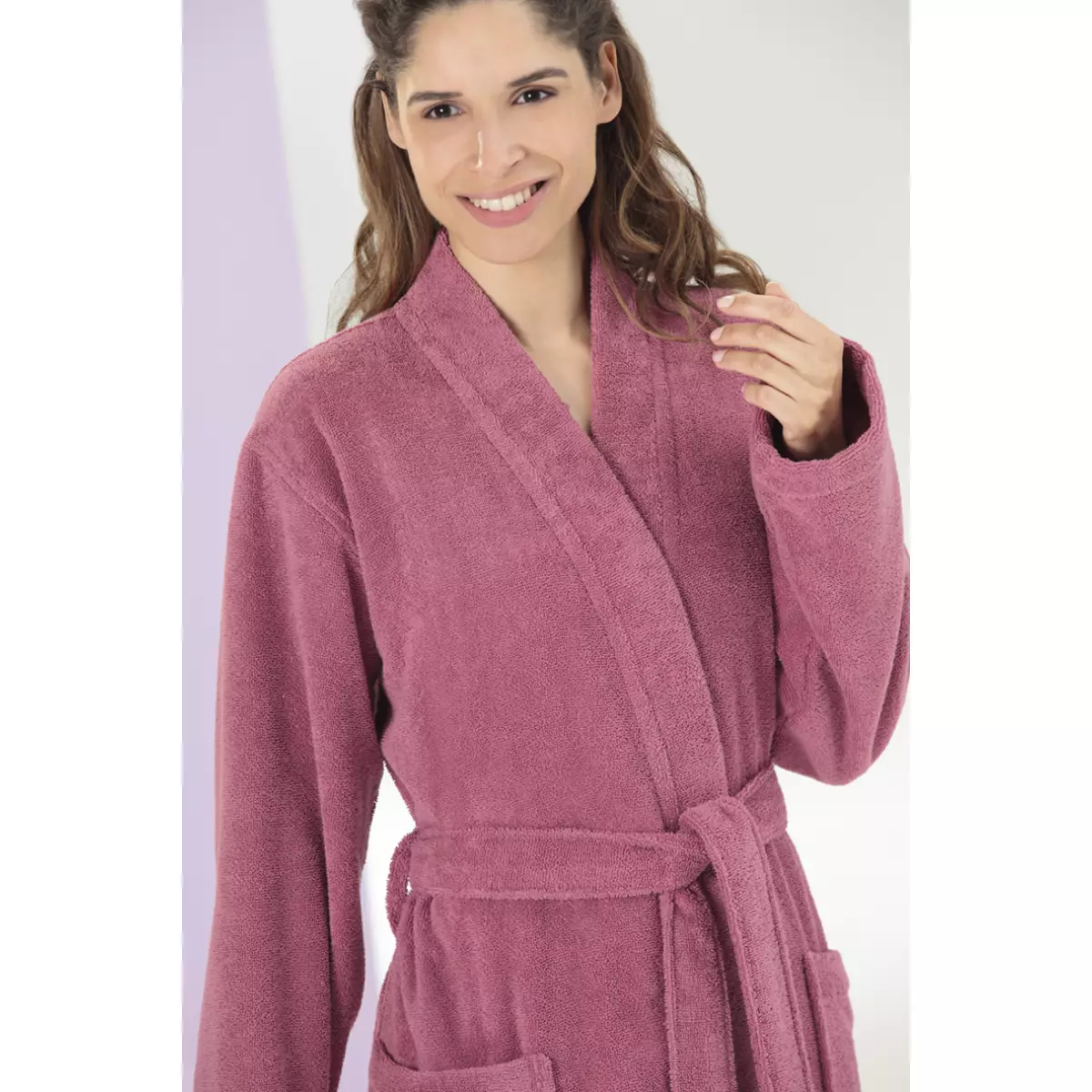 The kimono cut provides a timeless and comfortable fit with a self-tie belt at the waist and long sleeves for a graceful silhouette. The absorbent terry fabric is gentle on the skin, breathable, and perfect for daily use. With a length of approximately 120 cm, it offers both coverage and lightness, ideal for all seasons.