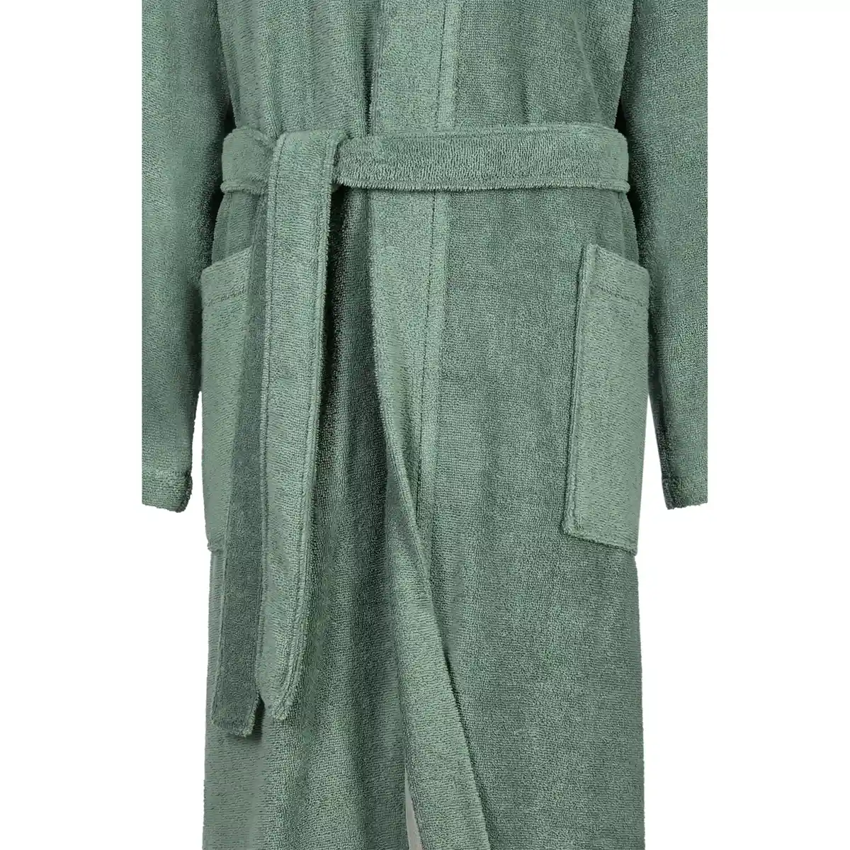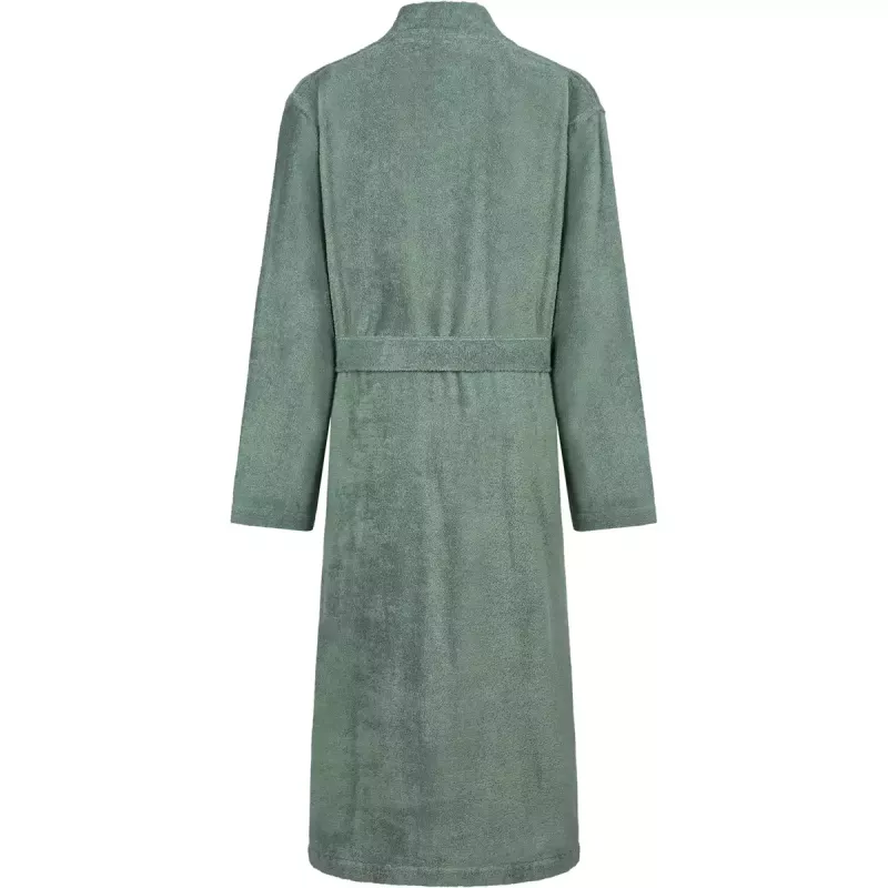 The kimono cut provides a flattering, relaxed fit with a waist belt for easy adjustment and freedom of movement. The absorbent terry fabric feels soft and natural against the skin while offering excellent breathability and comfort throughout the year. With a length of approximately 120 cm, it provides both full coverage and lightweight wearability.