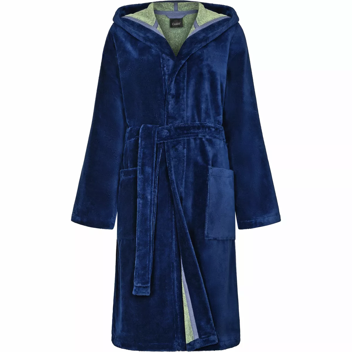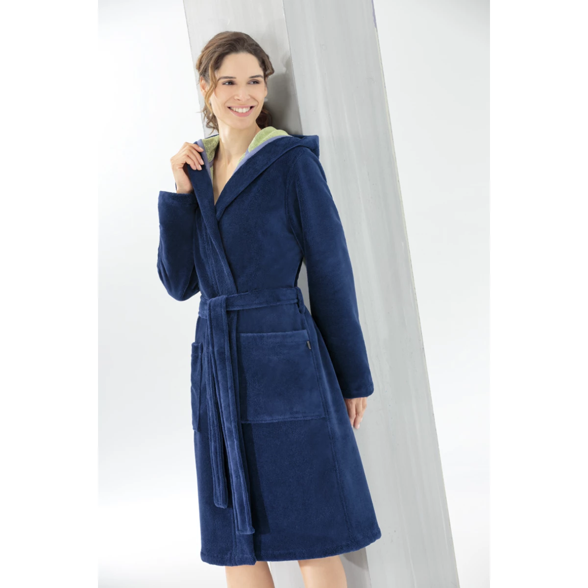Cawö Women’s Blue-Green Bathrobe – Double-Sided Hooded Design