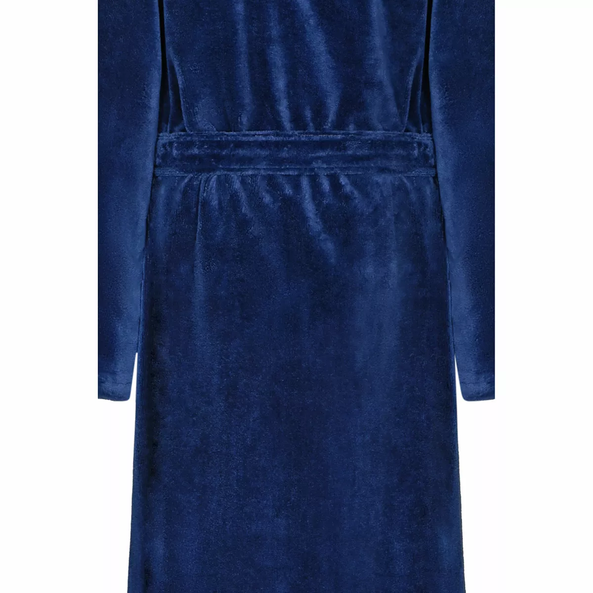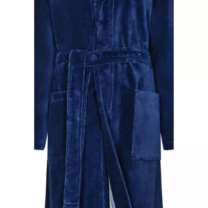 Made from premium wirk velour (45% cotton, 55% polyester, inner side 100% cotton), it features a smooth, elegant exterior and a soft, absorbent cotton interior that feels wonderfully gentle against the skin. The double-sided design in deep navy and blue-green shades adds a sophisticated, contemporary touch.
