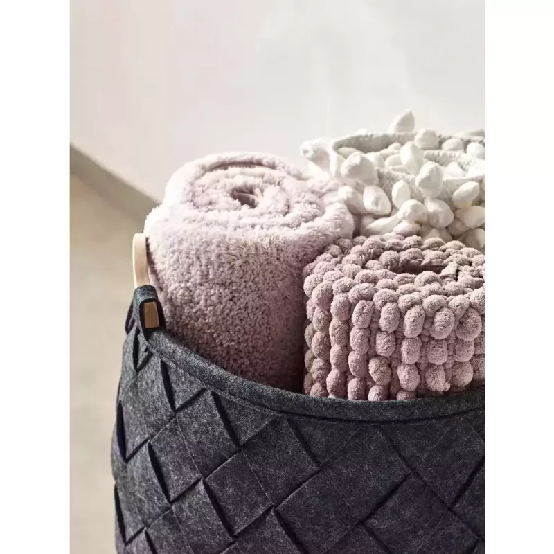 Använd Amy-korgen som förvaringslåda för handdukar, badrumsartiklar, accessoarer, leksaker eller textilier. Den robusta konstruktionen gör att den behåller sin form och funktion över tid, samtidigt som den tillför en stilfull och harmonisk känsla till rummet. Kombinera gärna med fler storlekar från Amy-serien för en enhetlig och genomtänkt förvaringslösning.
