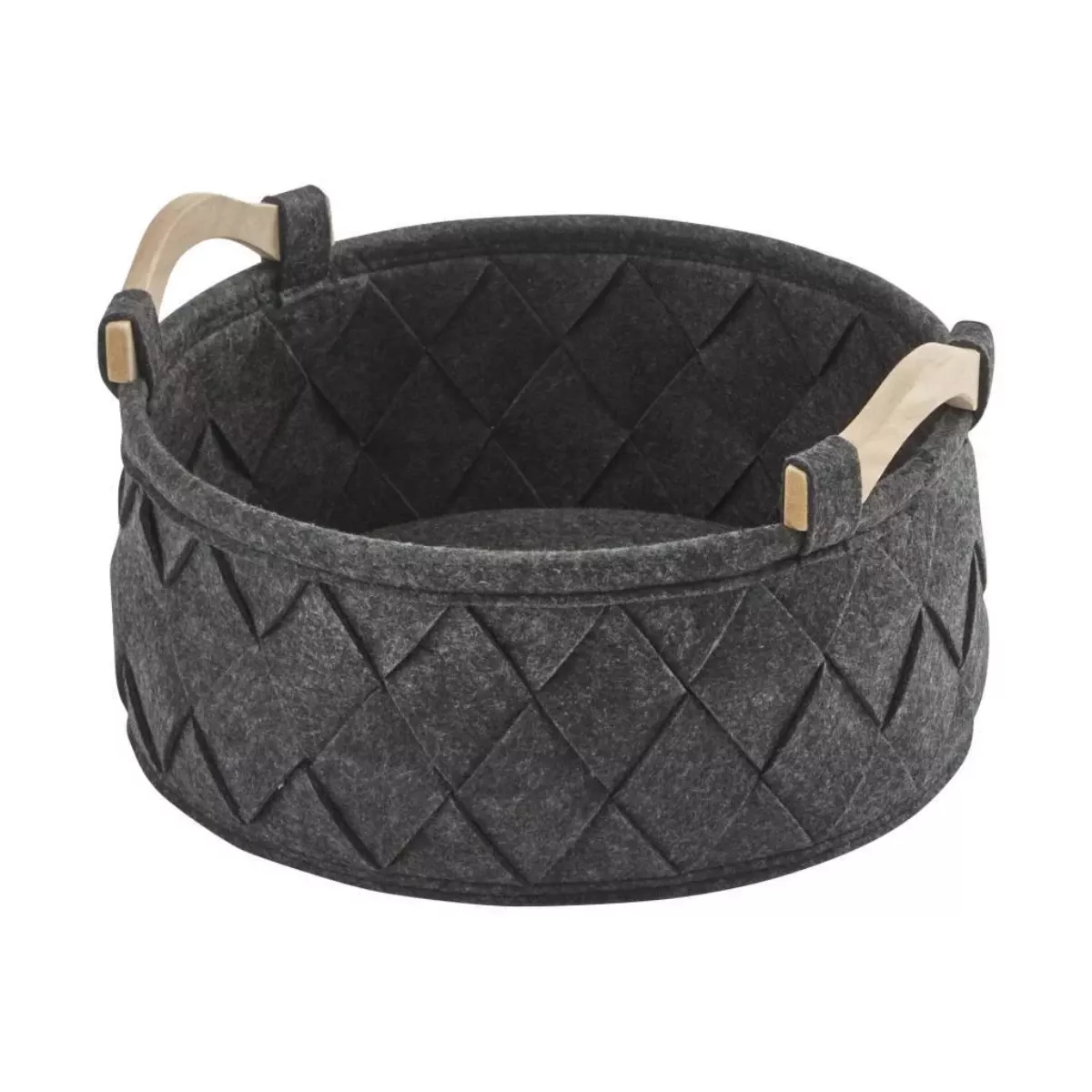 Amy Förvaringskorg Small i mörkgrå filt med trähandtag – Aquanova