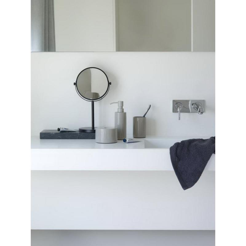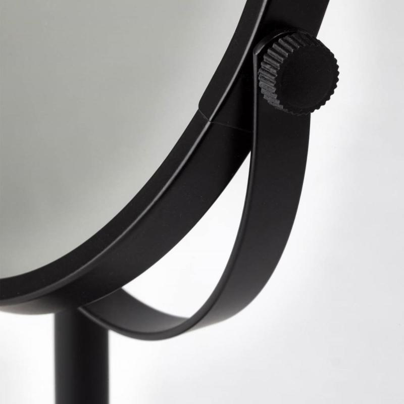 Aquanova BEAU sminkspegel och rakspegel. Dubbelsidig svart stående spegel där ena sidan har 3x förstoring. En dekorativ makeup spegel för till exempel badrum eller sminkbord. Bordsspegeln är tillverkad av svart pulver lackerat stål. Spegeln är rund och har måtten: Höjd 33 cm, Ø 19,5 cm. Köp Aquanova spegel online från Casa Zeytin.