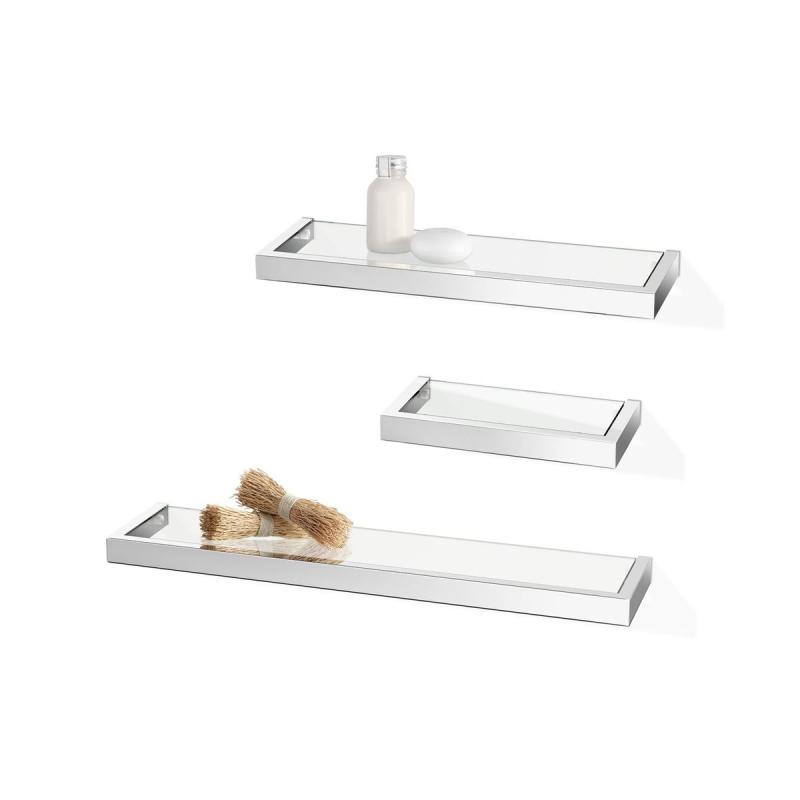 Badrumshylla i härdat, frostat glas med väggfäste för borrning eller vidhäftning. Mått: w. 46,5 cm, h. 3 cm d. 13,2 cm. Tillverkad av 18/10 rostfritt stål, blankpolerad av ZACK.