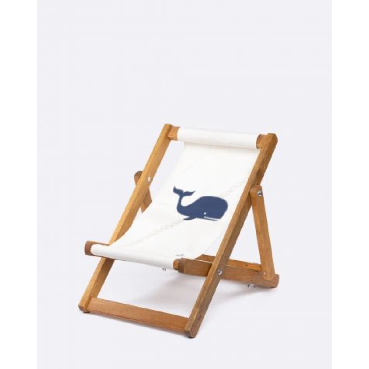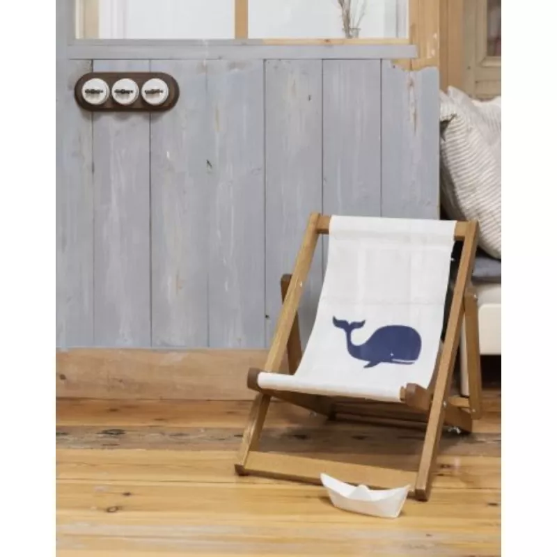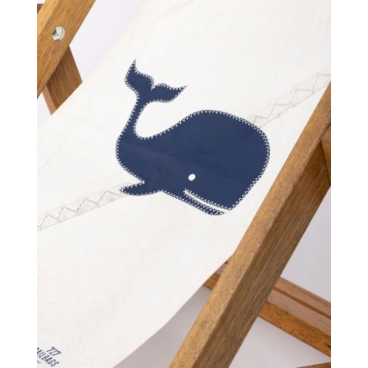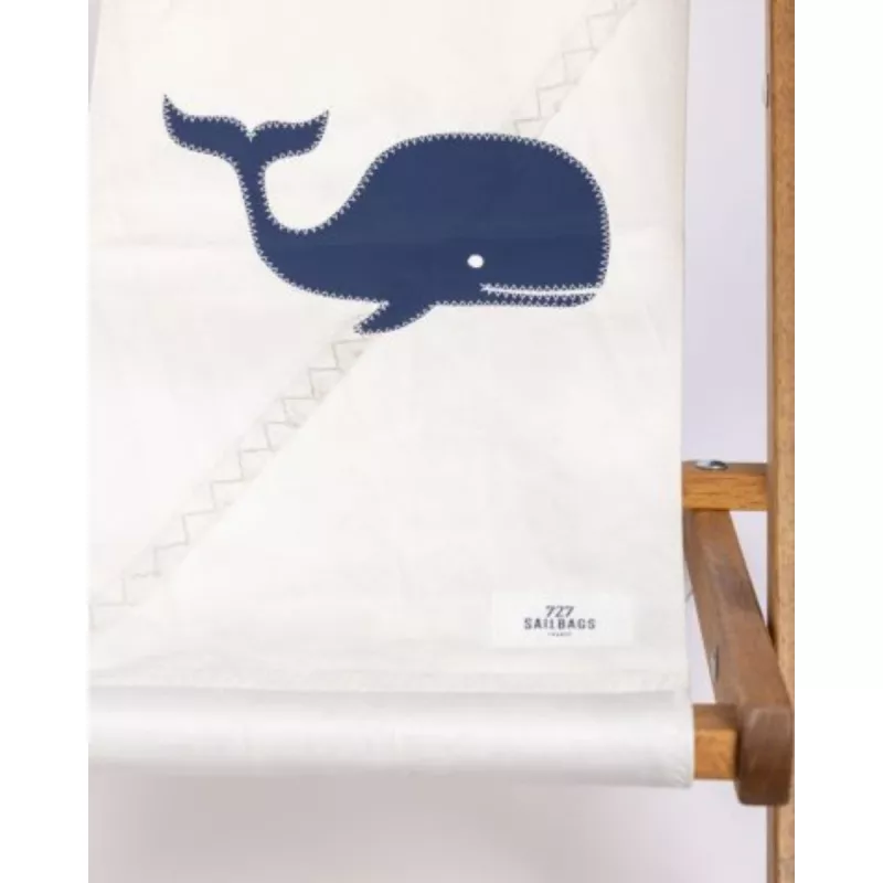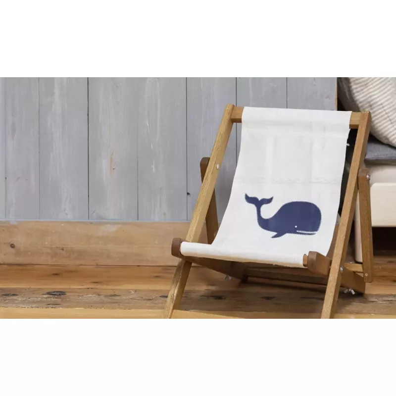 Nautisk barnsolstol av återvunnen segelduk med valmotiv.