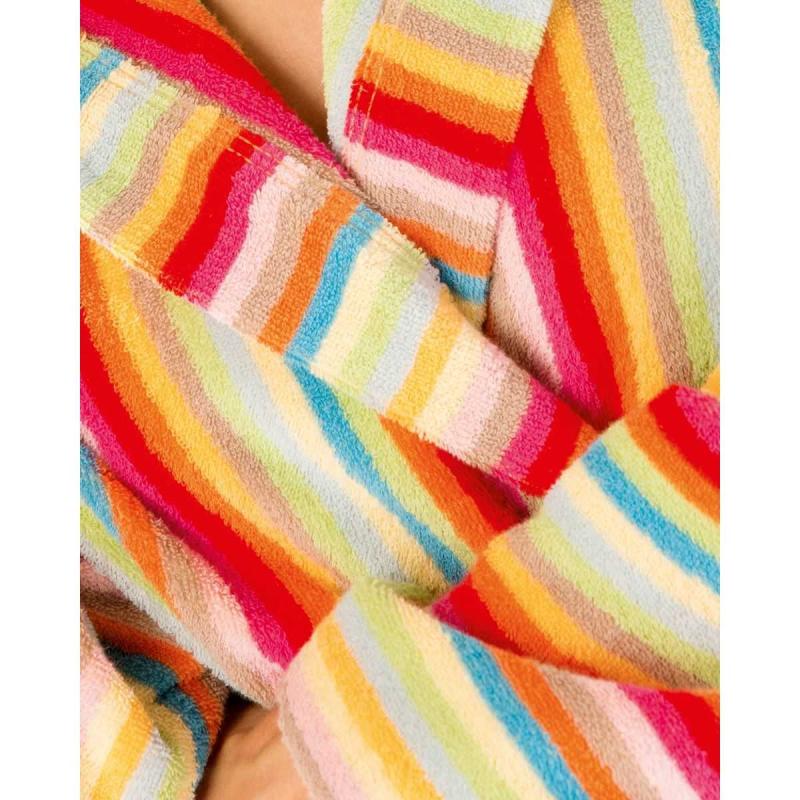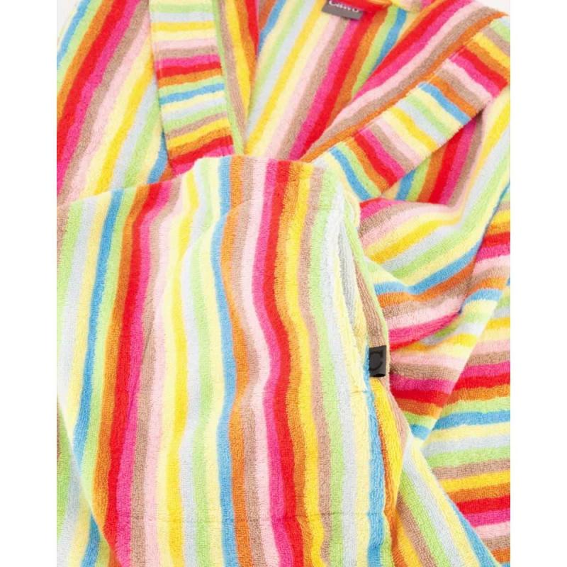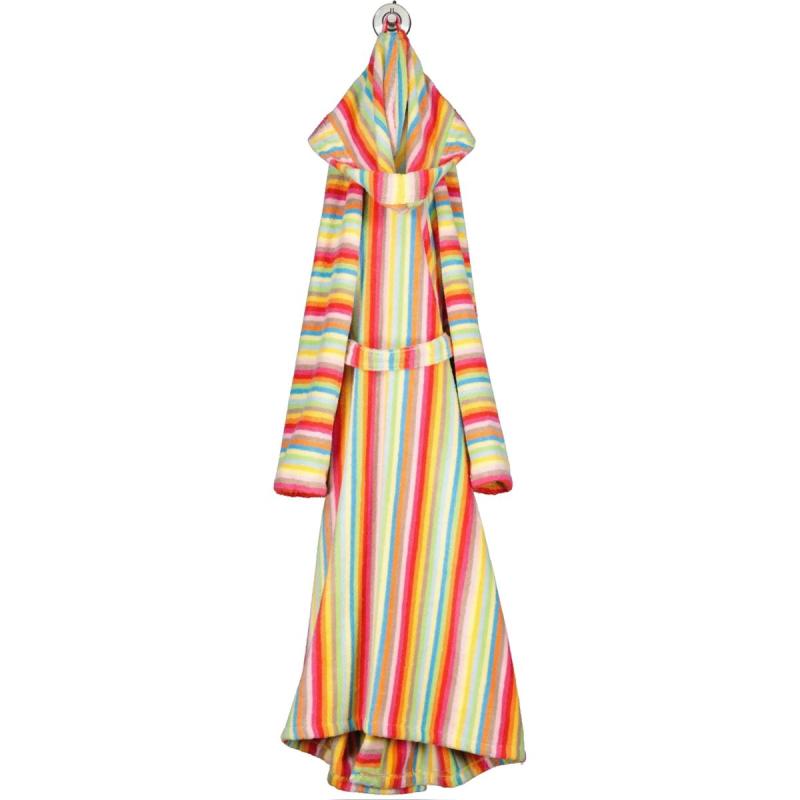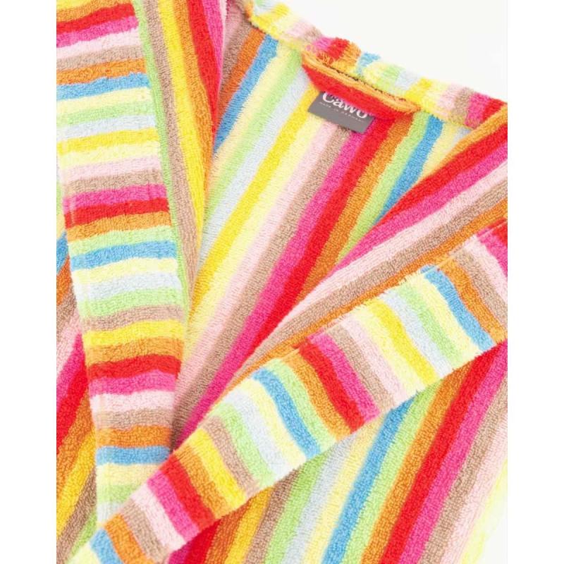 Letar du efter en högkvalitativ och färgglad dam-morgonrock med huva? Titta inte längre än Cawö Morgonrock dam Lifestyle 7081-25 i 100% bomull. Denna badrock av hög kvalitet har en färgglad randig design som säkerligen kommer att lysa upp din dag. Cawö 7081-25 morgonrocken tillverkas i Tyskland och säkerställer bästa ren bomullskvalitet och detaljerna i utförandet. Badrockens harmoniska ränder i en färgglad mix skapar en trendig och unik look medan kvaliteten på det mjuka frottétyget känns mjuk och behaglig mot huden. Den varma huvan inbjuder dig att mysa och koppla av, vilket gör din fritid till en oslagbar feel-good-upplevelse.