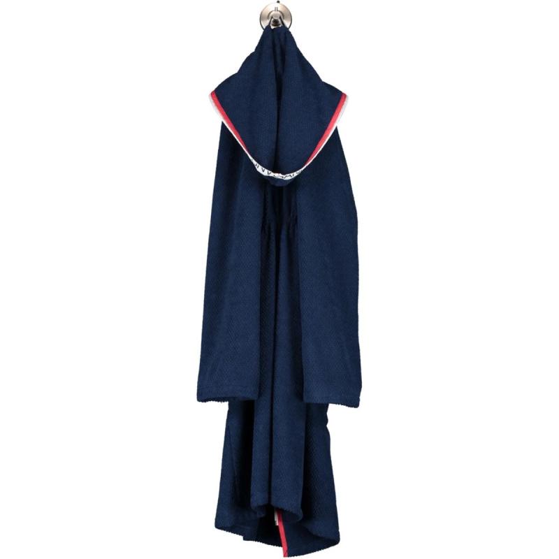 Letar du efter en snygg morgonrock av hög kvalitet? Upptäck elegansen och komforten hos Cawö Morgonrock Sea Salt Sand 3101-133 med praktisk dragkedja och en härlig huva i marinblått.