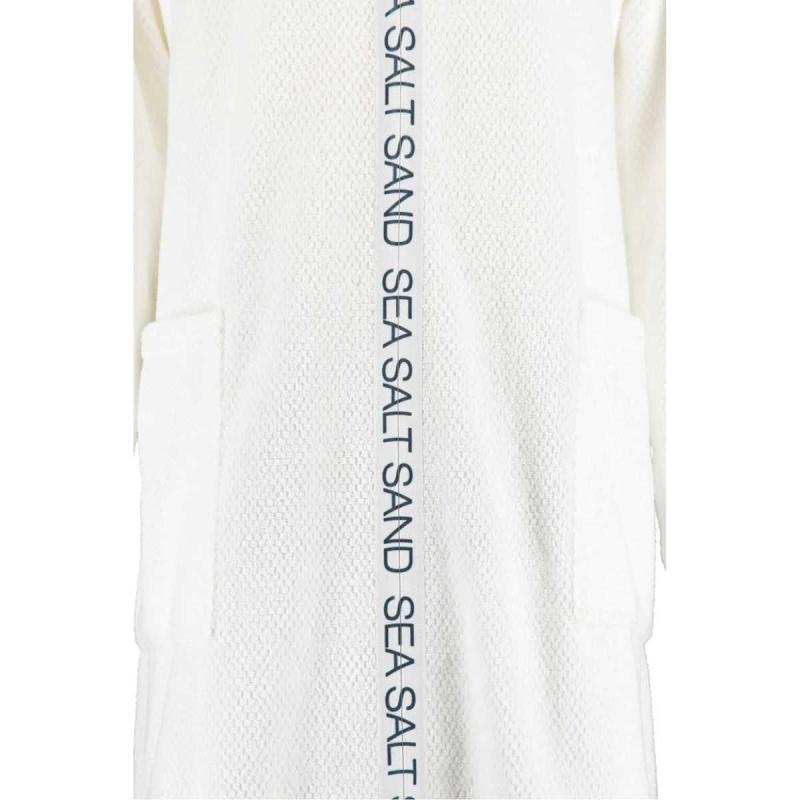 - Svep in dig i bekvämligheten av högkvalitativ frotté gjord av 100 % bomull. Den attraktiva designen och SEA SALT SAND-bokstäverna längs kanten gör denna badrock för kvinnor verkligen speciell.