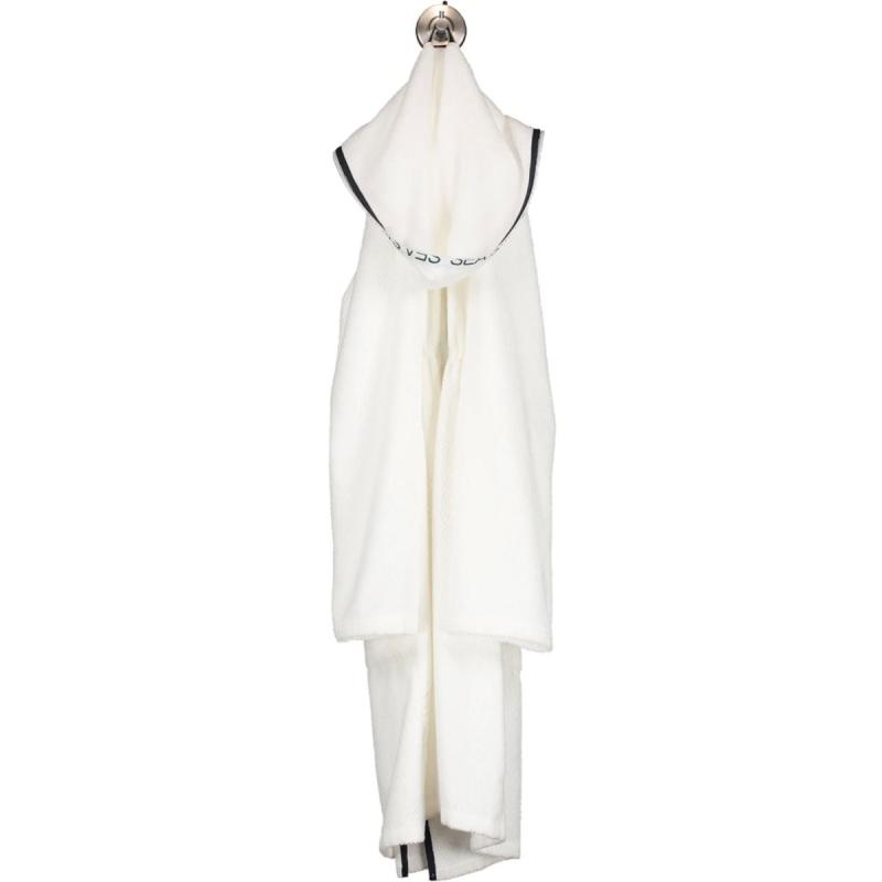 Letar du efter en snygg morgonrock av hög kvalitet? Upptäck elegansen och komforten hos Cawö Morgonrock Sea Salt Sand 3101-600 med praktisk dragkedja och en härlig huva i färgen vit.