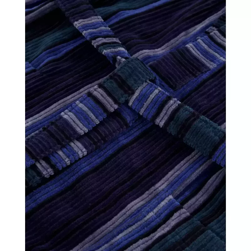 Denna eleganta morgonrock i kimono-stil är utformad med ett iögonfallande randigt mönster och en unik cord-optik som ger en distinkt och sofistikerad look. det praktiska midjebältet accentuerar midjan och säkerställer en skräddarsydd passform.