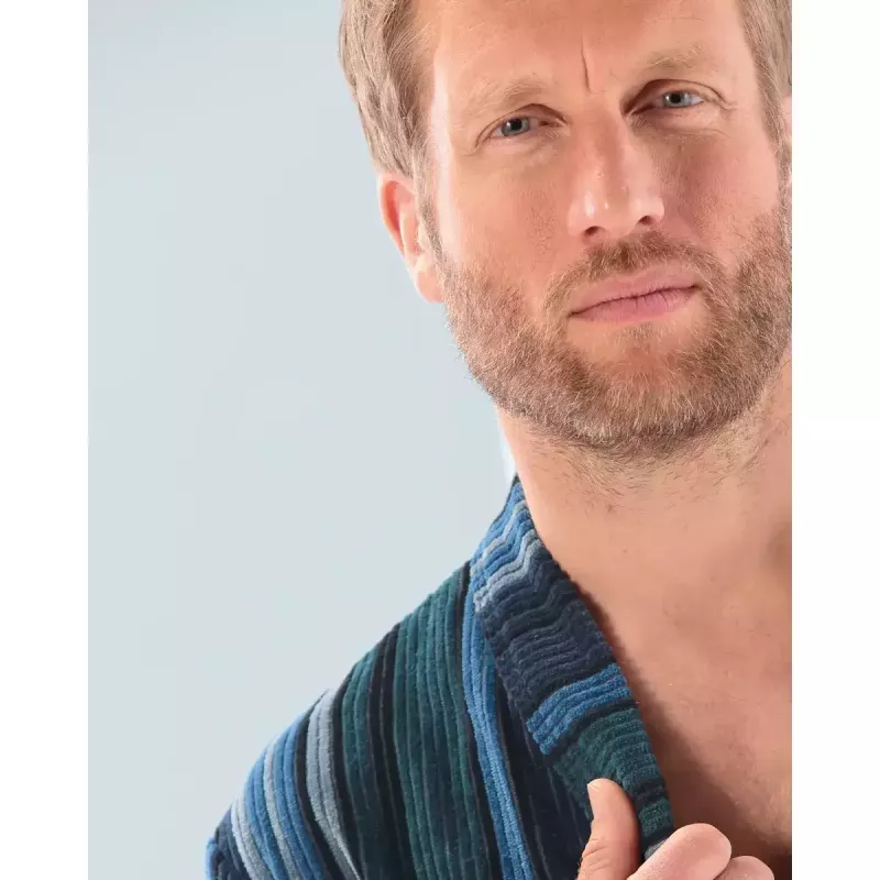 Ge din morgonrutin en lyxig uppdatering med Cawö Randig Morgonrock Herr Kimono 2509-14 Aqua. Oavsett om det är för en avkopplande start på dagen eller en avslappnad kväll hemma, är denna morgonrock den perfekta kombinationen av elegans och komfort för den moderna mannen.