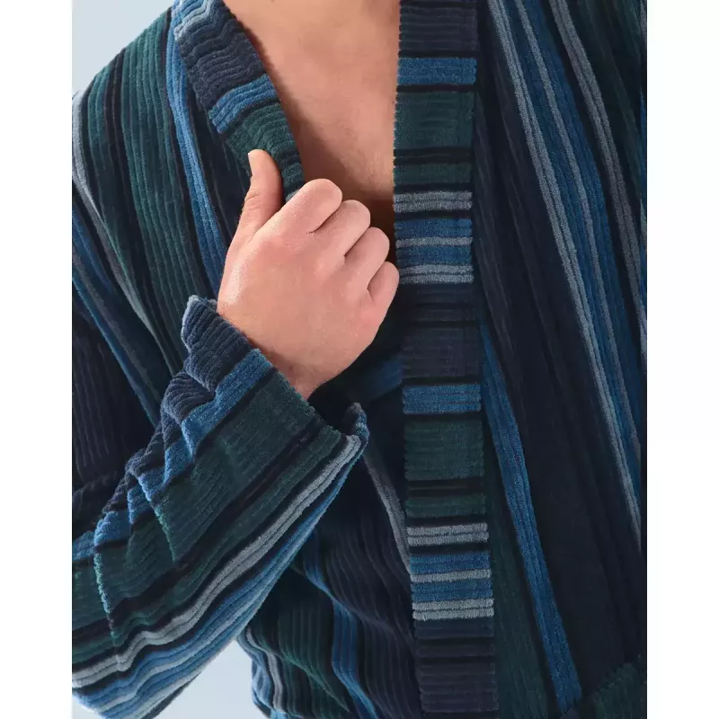 Cawö Randig Morgonrock Herr Kimono 2509-14 Aqua