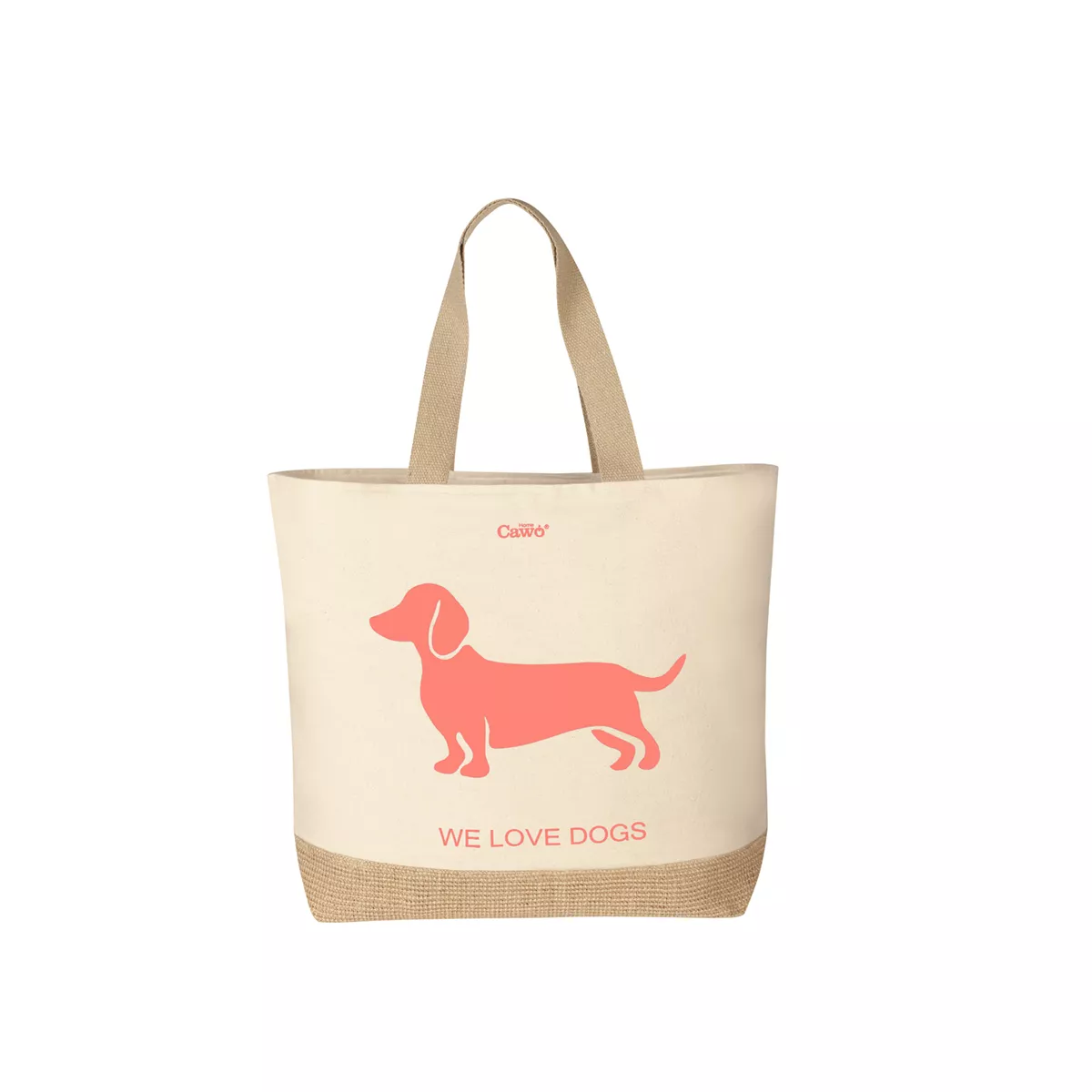 Cawö We Love Dogs strandväska natur/pink-orange – rymlig shoppingväska