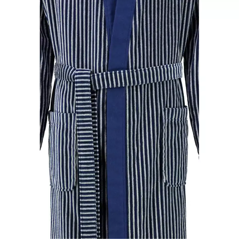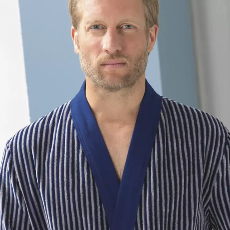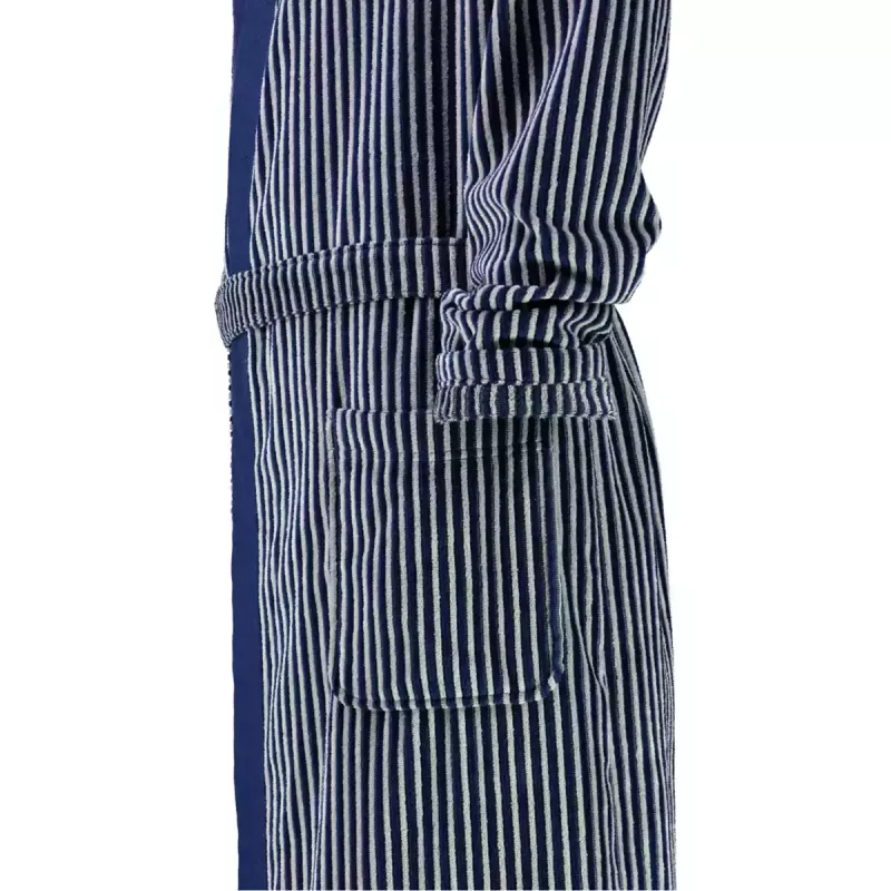 Denna morgonrock är framtagen med ett iögonfallande randigt mönster i en unik cord-optik, vilket ger en distinkt och sofistikerad look. Tillverkad av 100% högkvalitativ bomull i Walkvelours-kvalitet, erbjuder den en oslagbar mjukhet och komfort.
