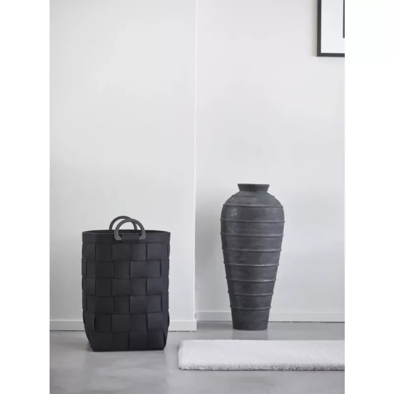 Den neutrala svarta färgen gör att korgen enkelt smälter in i olika inredningsstilar och ger ett sofistikerat uttryck. Den robusta konstruktionen gör att den håller formen över tid, samtidigt som den är lätt att flytta tack vare de praktiska handtagen.