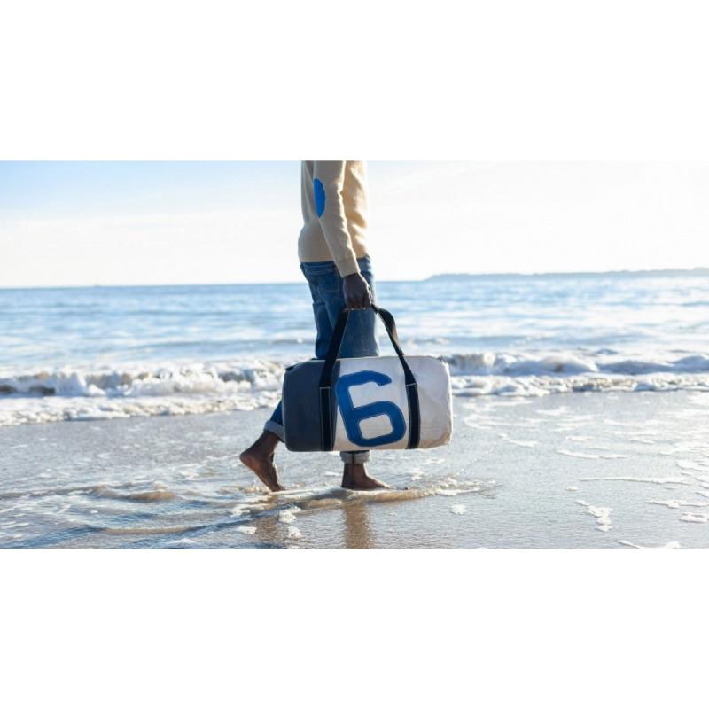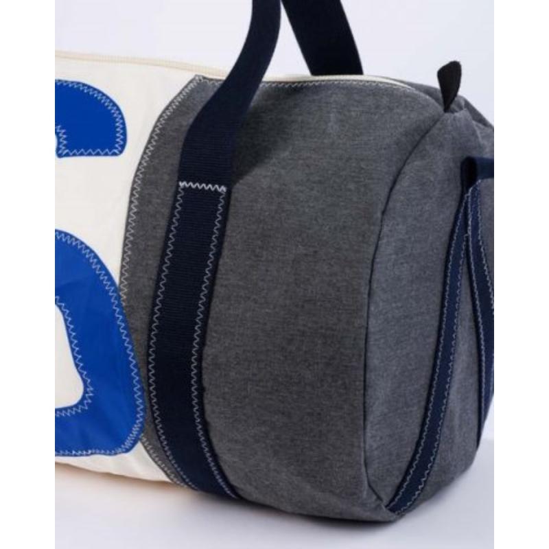 Upptäck Duffelväska Onshore Navy Blue, en mångsidig väska perfekt för weekendresor, sportaktiviteter eller ditt dagliga äventyr. Tillverkad från återvunnet segelduk från kryssningsfartyg som seglat över Atlanten, bär varje väska en unik historia.