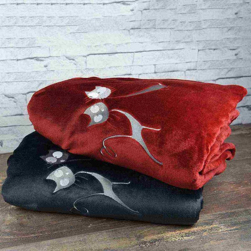 Älskar du katter? Här är PARIS BY CAT-pläden! Njut av den underbart mjuka MicroSensoft fleecepläden från Sensei Maison. Fleece pläden av 100% polyester är lika mjuk som pälsen på en helig burmesisk katt. Dess mikrofibrer gör pläden extremt mjuk och beröringskänslorna får dig att känna lycka. Den broderade PARIS BY CAT pläden har storleken 130x170cm och kan bäras på axlarna eller svepas runt kroppen kalla vinterkvällar. För män eller kvinnor, den finns i färgerna carbone och cardinal.
