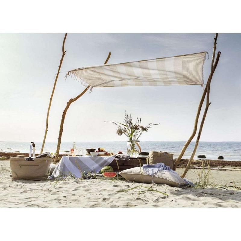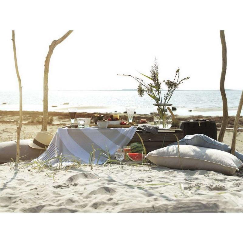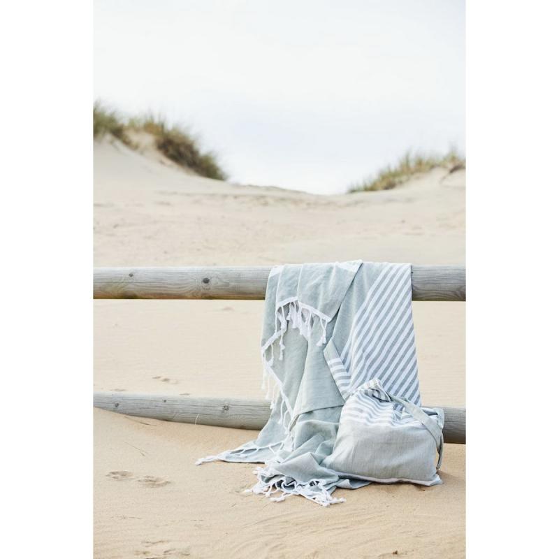 Sagaform hamam handduk Ella är en tunn strandhandduk i tidlös design. Ett lätt, snabbtorkande strandlakan som väger lite, är lätt att ta med som är vävd av ekologisk bomull. Alla handdukar är smyckade med Sagaforms klassiska och karakteristiska ränder i olika mönster och i tre färgkombinationer som kan matchas med varandra: grönt, blått och beige. Hamamhandduken har fransar på kortsidorna. Ella är perfekt efter badet då handduken torkar snabbt och ger en tunn härlig känsla runt kroppen. Vi gillar också att använda Ella som badhandduk i badrummet, sarong eller som bordsduk. Kombinera gärna med Ella extra stor hamam handduk 145x250, Ella liten hamam handduk 50x70, Ella hamam servett eller Ella Hamam bomullspåse från Sagaform.