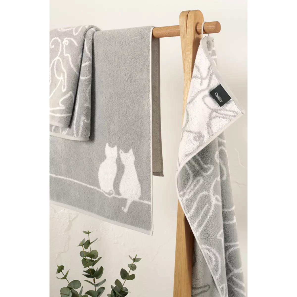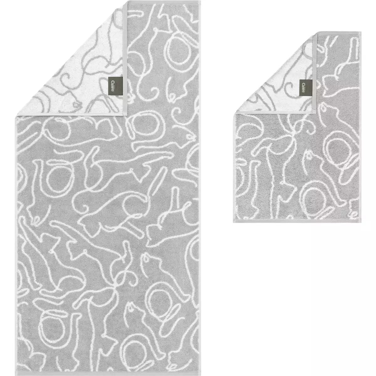 Handduk Cute Cats platin-vit 6264-76 – Cawö handduk i premium frotté