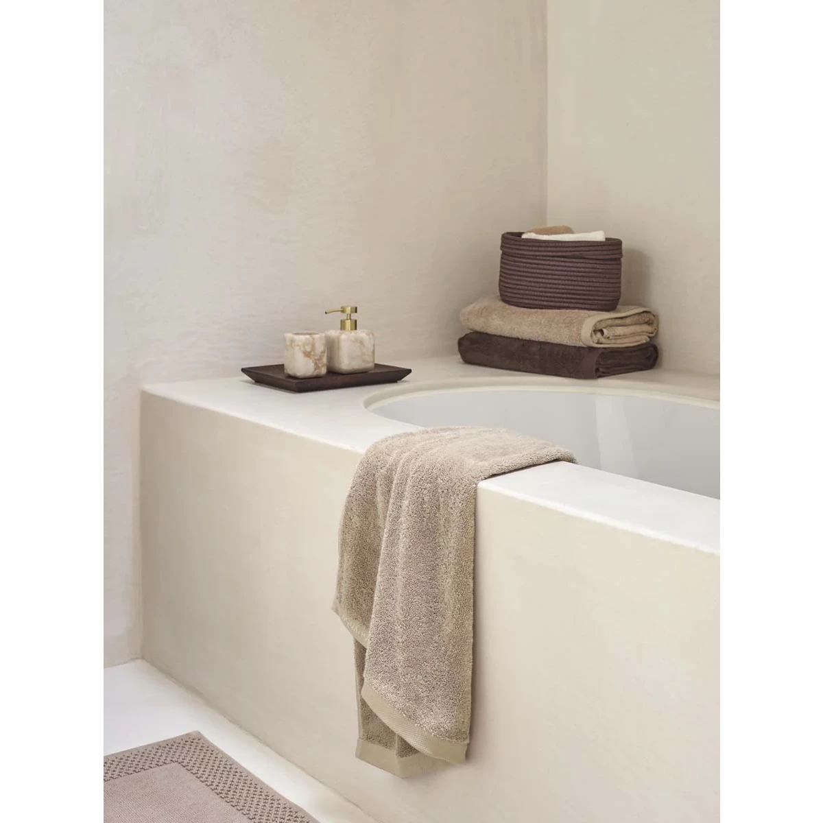 Skapa en elegant och tidlös känsla i ditt badrum med Handduk London Pecan från Aquanova – en lyxig handduk i 100% kammad egyptisk bomull med en generös vikt på 600 g/m². Den höga densiteten gör handduken extra mjuk, fyllig och absorberande, vilket ger samma känsla som exklusiva handdukar på lyxhotell och spa.