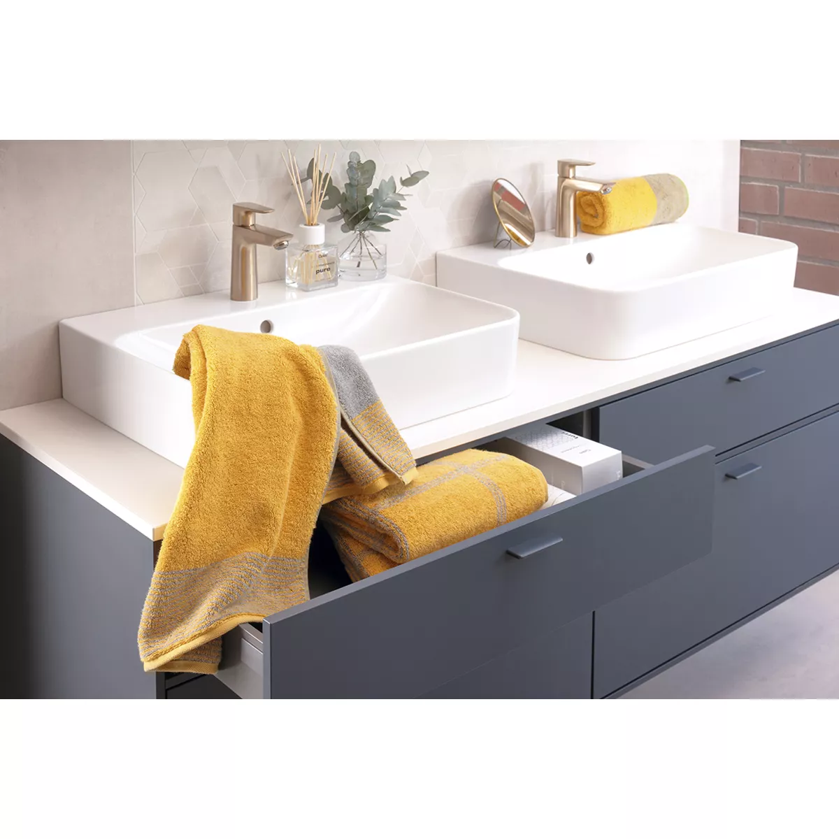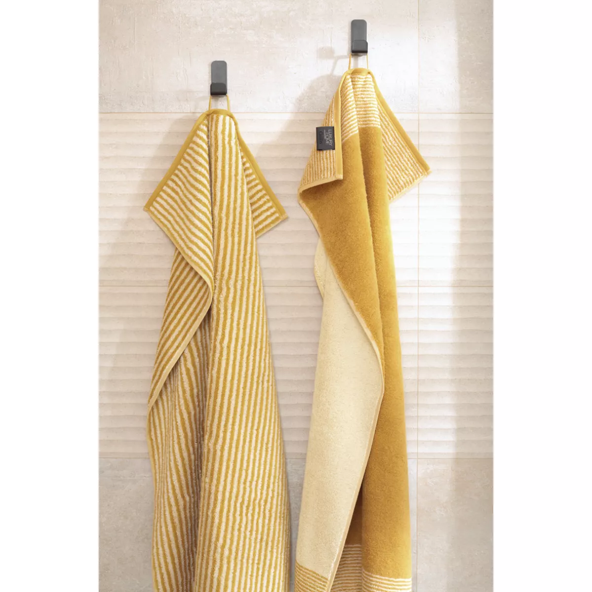 Låt kvalitet och design mötas i Handduk Luxury Home Two-Tone Gold 590-53 i serien Luxury Home Coll. / Two-Tone. Den är tillverkad i 100% bomull av hög kvalitet. walkfrotté med en kvalitet på 522 g/kvm, extra fluffig. med ett uttrycksfullt motiv som fångar blicken. Materialet är utvecklat för att behålla färg och form över tid. Ett medvetet val för dig som värdesätter hållbar textilproduktion.