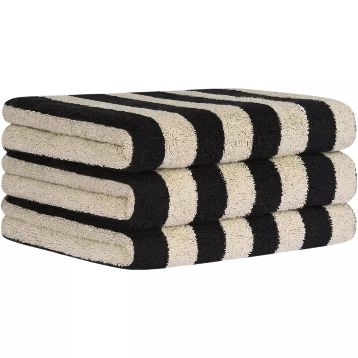 Handduk med breda ränder svart-beige 6277-93 – handduk i färgen svart/beige från serien Bold