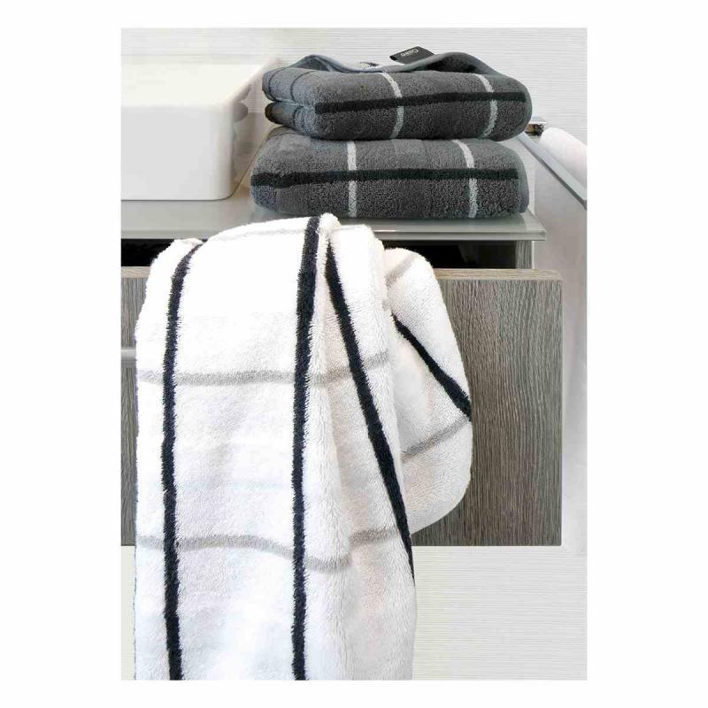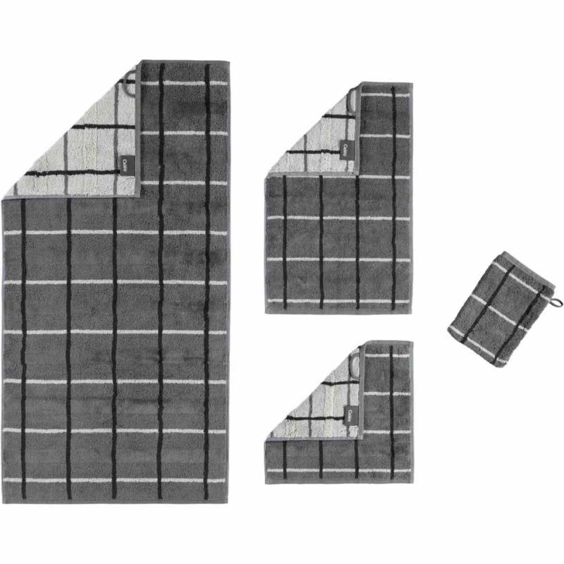 Handduken Noblesse Square 1079-77 anthrazit från Cawö presenteras i en enkel modern och stilren rutmönstrad design. En handduk av hög kvalité i harmoniskt matchade uttrycksfulla färger som ger den sitt extraordinära utseende med en exklusiv lyxkänsla. Den fluffiga frottéhandduken är tillverkad i Tyskland av 100% ren högkvalitativ bomull 550g/m2. Den kan enkelt tvättas i tvättmaskin på 60 grader C och är lämplig för torktumlare.
