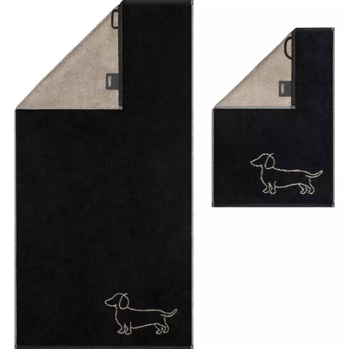 Handduk We Love Dogs Companion svart-beige 6248-93 – Cawö handduk i premium frotté