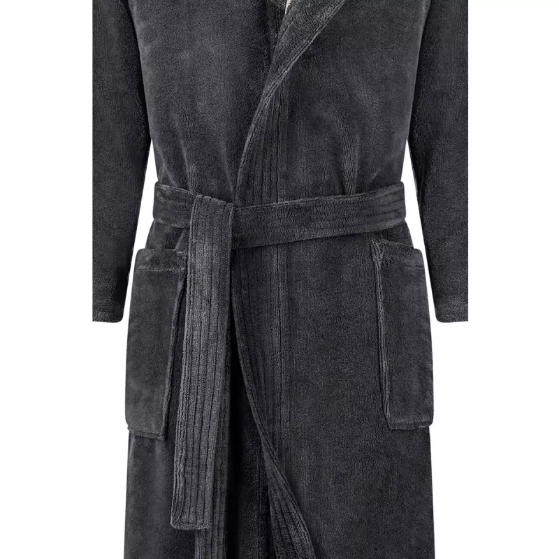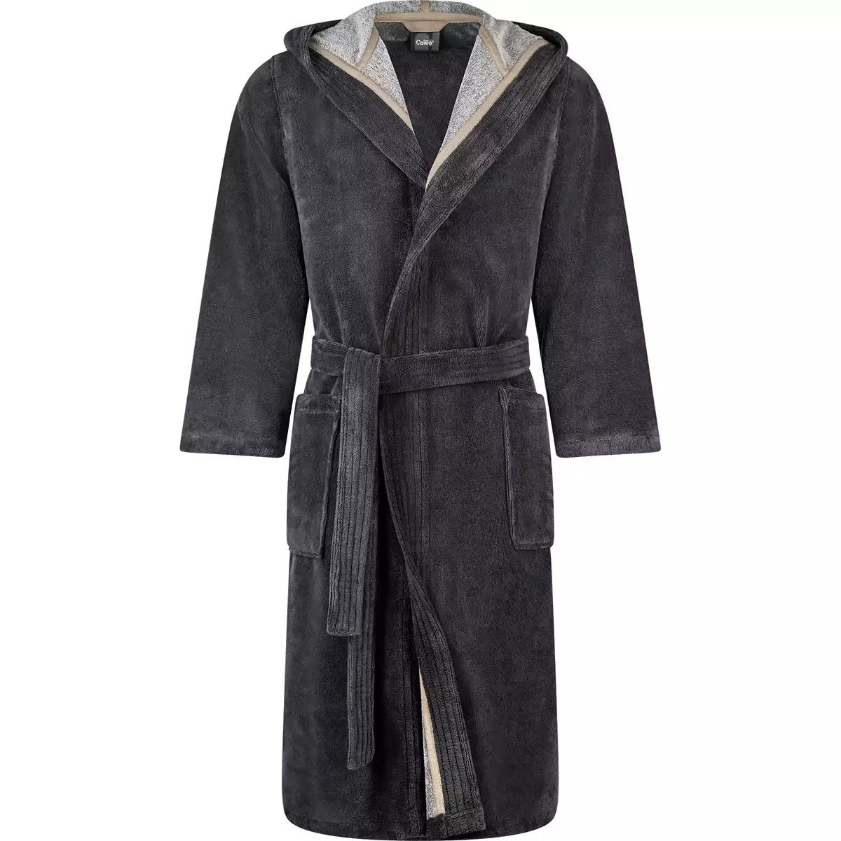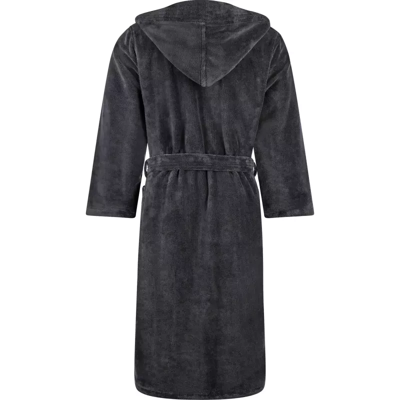 Cawö herrmorgonrock stengrå – dubbelsidig velourrock med huva