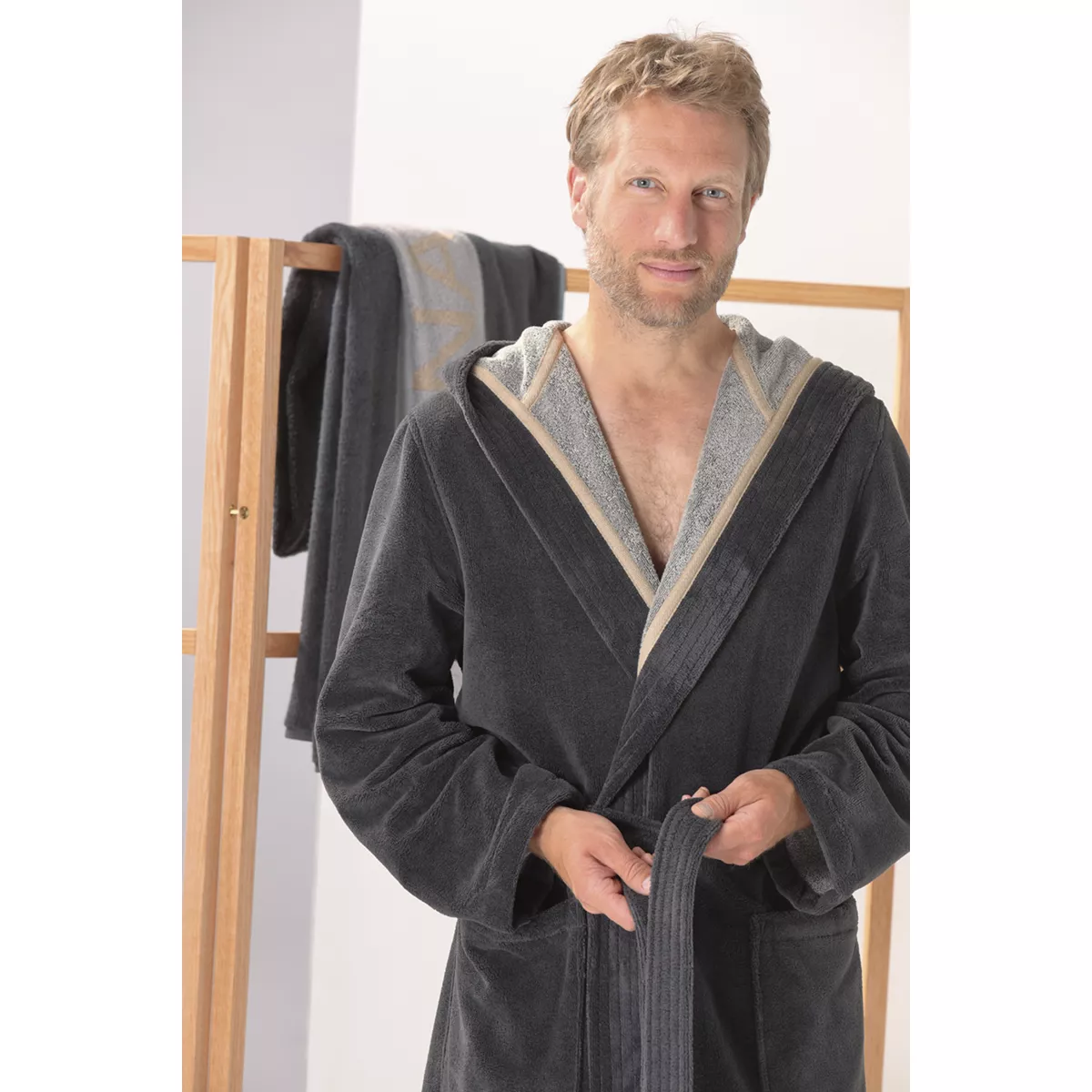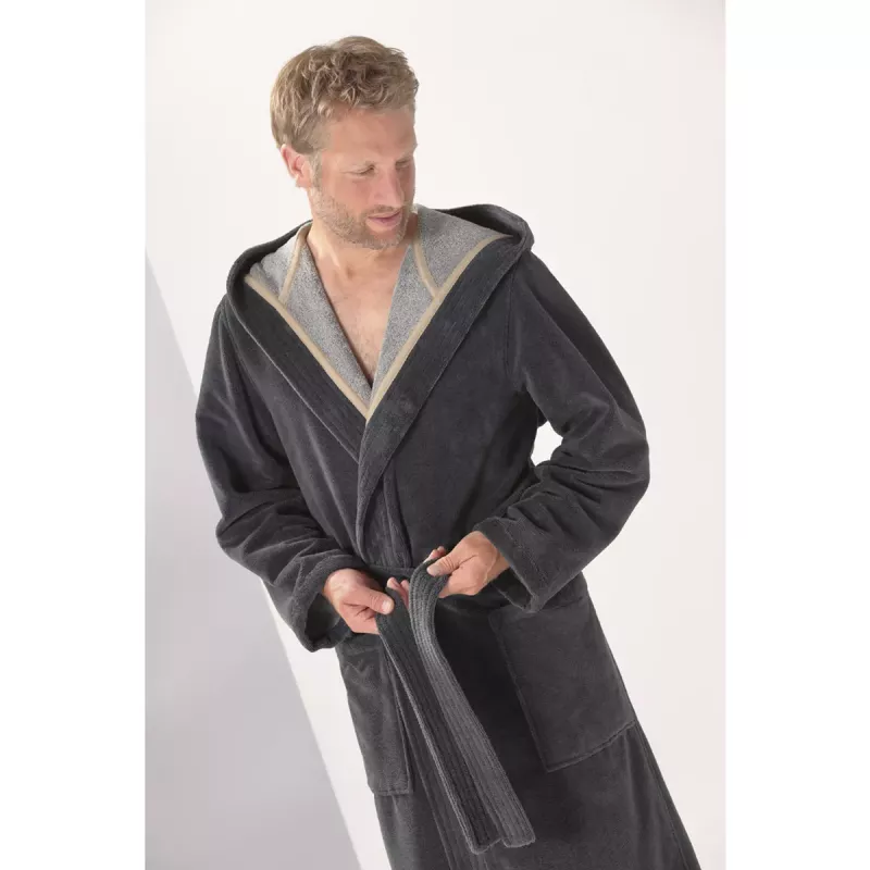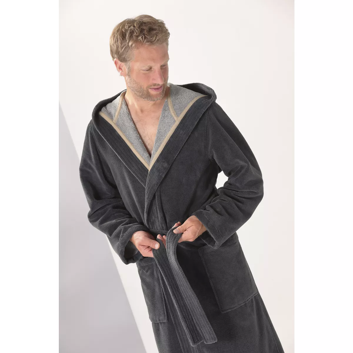 Herr Dubbelsidig Morgonrock med Huva Stengrå