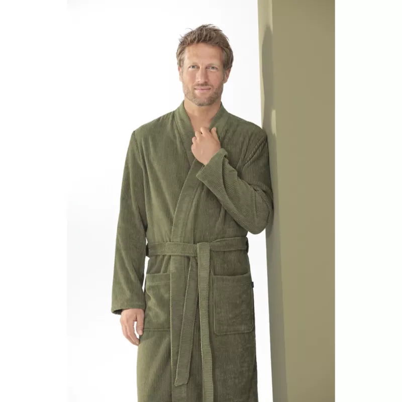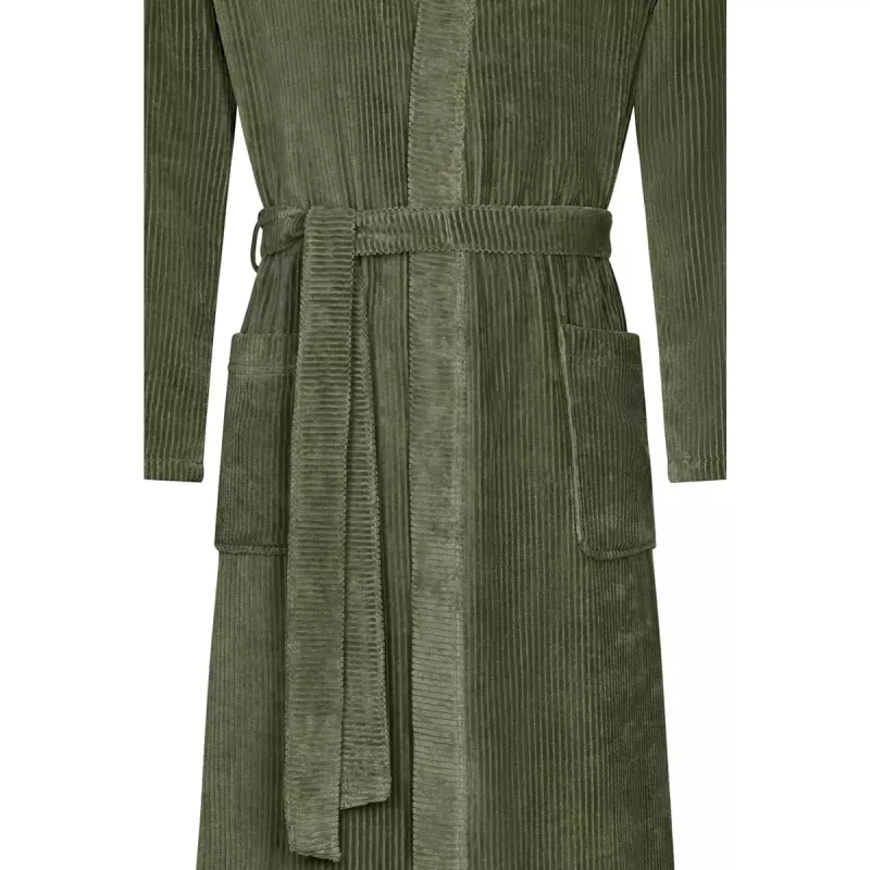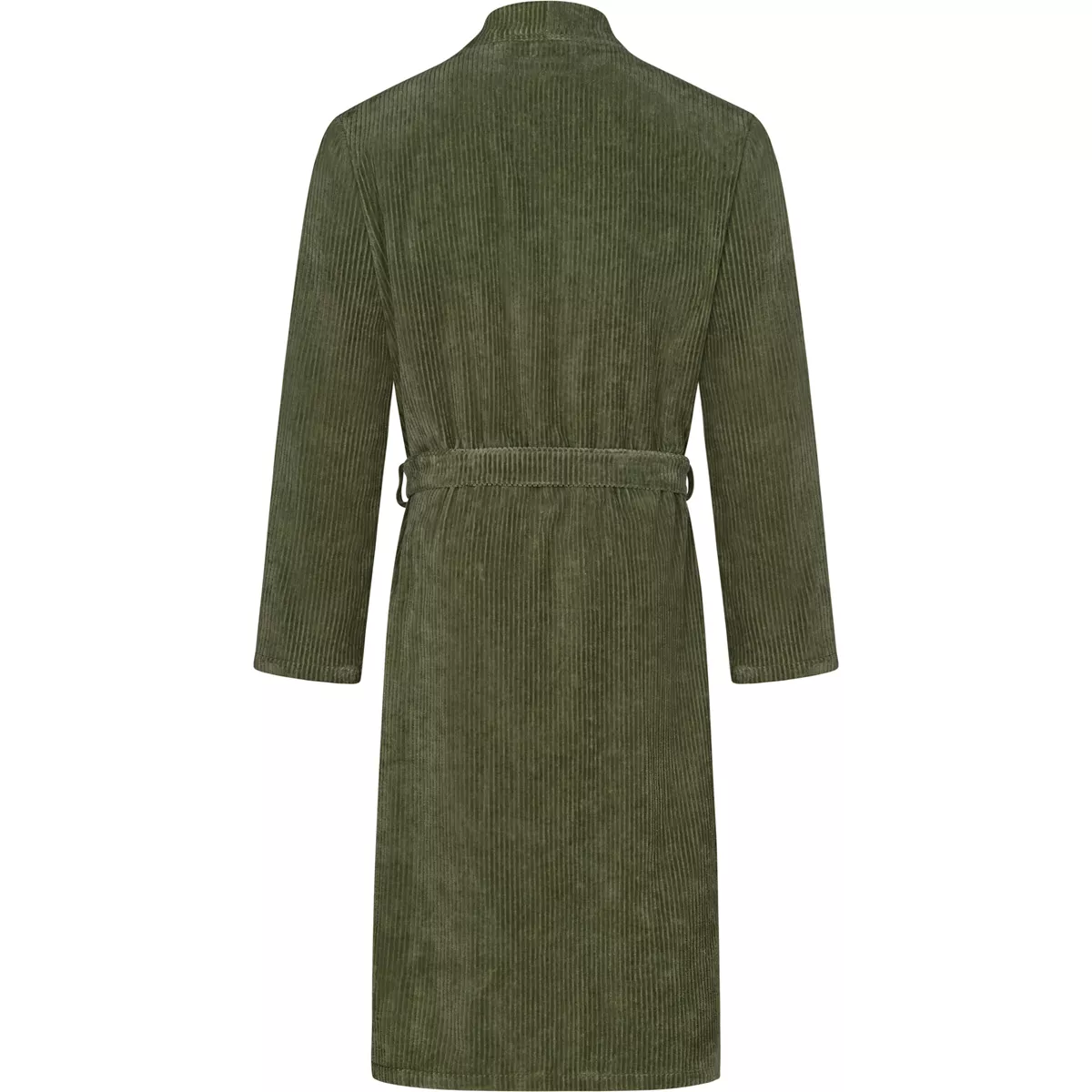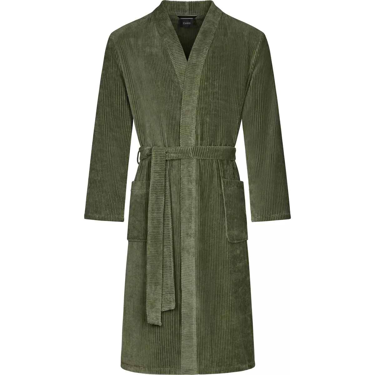 Cawö herrmorgonrock kimono fieldgrön – extra lätt velour i cord-look