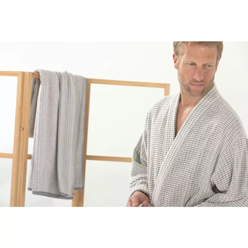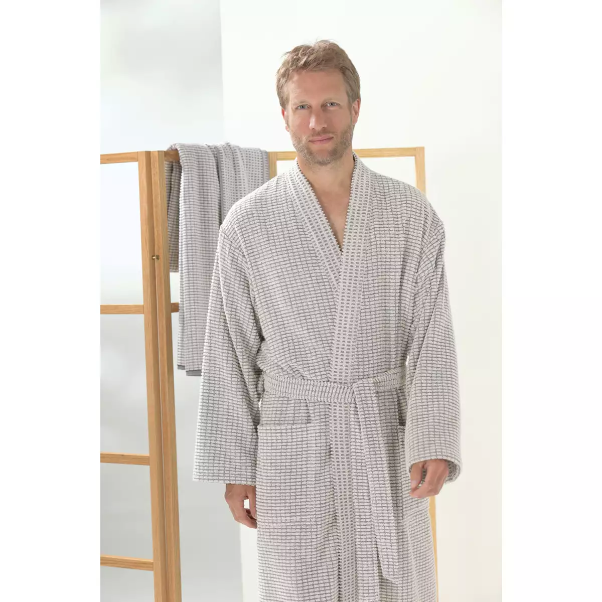 Cawö herrmorgonrock kimono natur-stein – extra lätt i mjuk frotté