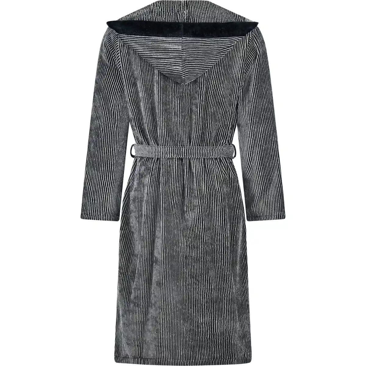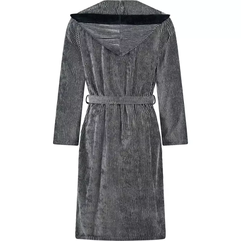 Cawö herrmorgonrock med huva natur-svart – exklusiv mönstrad velour