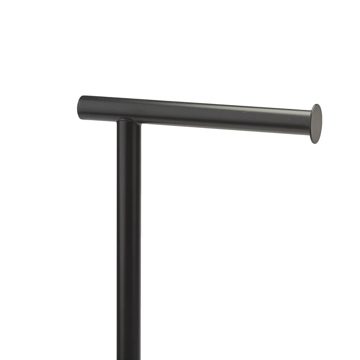 Den smarta konstruktionen gör att du enkelt kan placera hållaren där den behövs, och den rymmer både en toalettrulle i användning samt två extra rullar i förvaring. Tack vare sin fristående design är den flexibel och passar perfekt i både små och stora badrum.