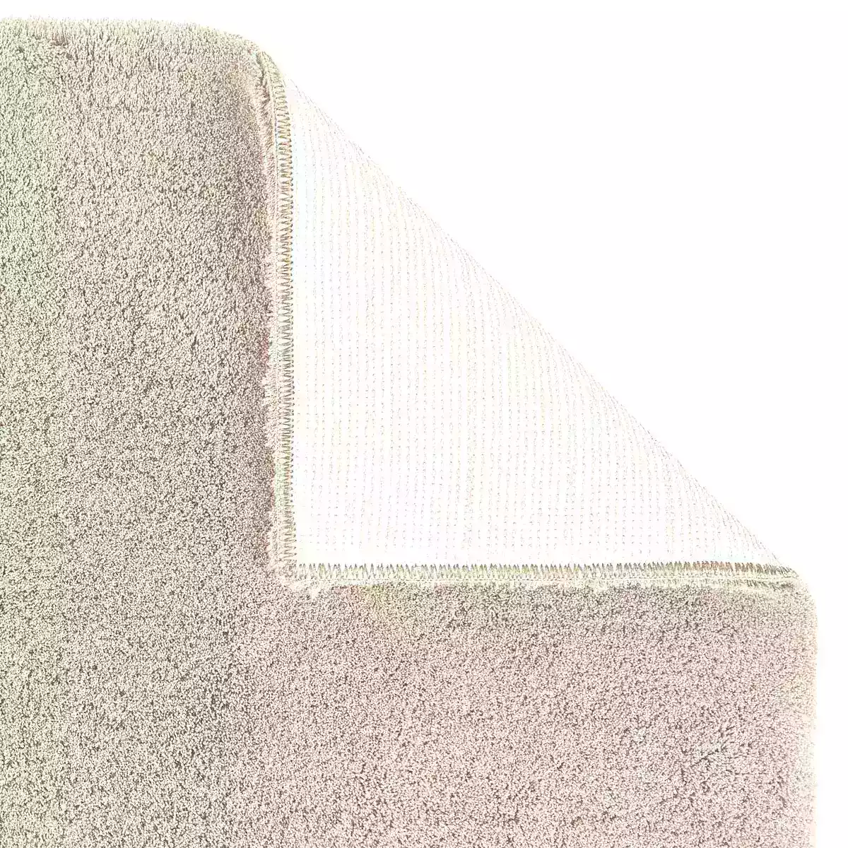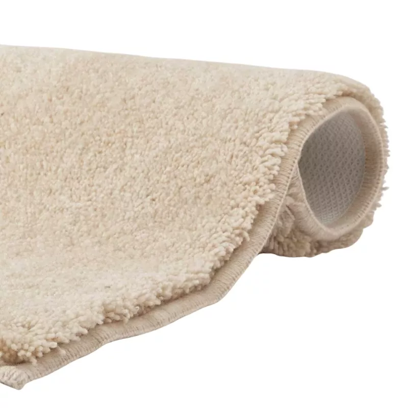 Polyakryl har utseendet av ull men är slitstarkt, färgbeständigt och snabbtorkande, vilket gör den idealisk för fuktiga badrumsmiljöer. Undersidan har dessutom en halksäker baksida i TPR (termoplastiskt gummi) som håller mattan stadigt på plats även på blöta golv.