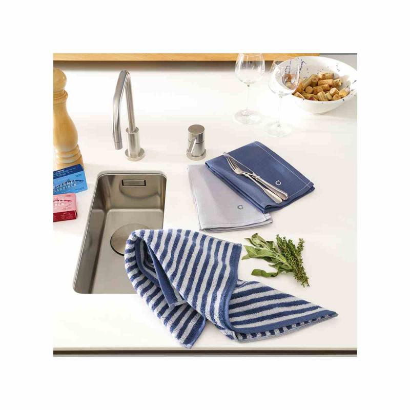 Handduken är anpassad för att matcha perfekt ihop med kökshandduk Cuisine Solid 590 50x50 cm av frotté för ett attraktivt och harmoniskt kökstextilkoncept. Handduken kan lätt tvättas i maskin, är lämplig för torktumlare och behåller sin form och färgglans efter många tvättar. En modern handduk för ett fashionabelt kök.