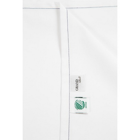 Som på hotell fast hemma. Grand Luxe lakan 240x280 cm är ett vitt, lyxigt, svalt och slitstarkt dubbellakan, ett internationellt renommerat Percale-vävt underlakan för dubbelsäng. Materialet bomull och polyester gör hanteringen enkel efter tvätt och torktumling. Lakanet är färgkodad med blå rand för lätt identifikation vid användning på hotell.