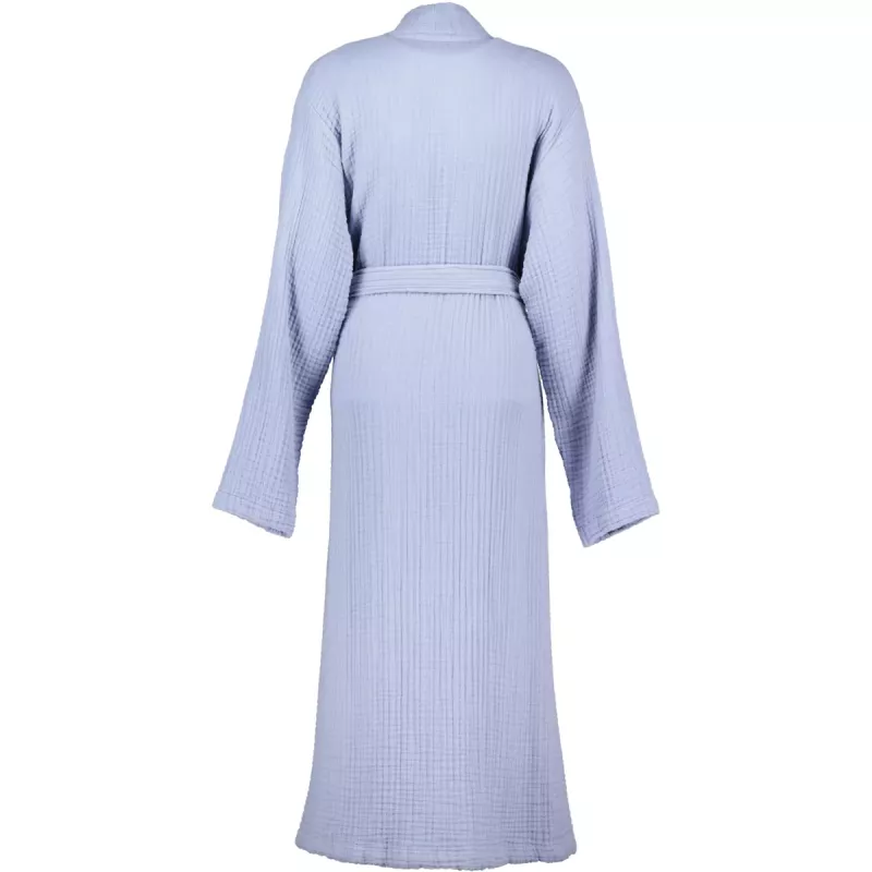 Lätt och Andningsbar Muslinbomull: Denna morgonrock är tillverkad i 100% muslinbomull som ger ett lätt och luftigt material, perfekt för att hålla dig sval och bekväm efter badet eller för avkoppling hemma.