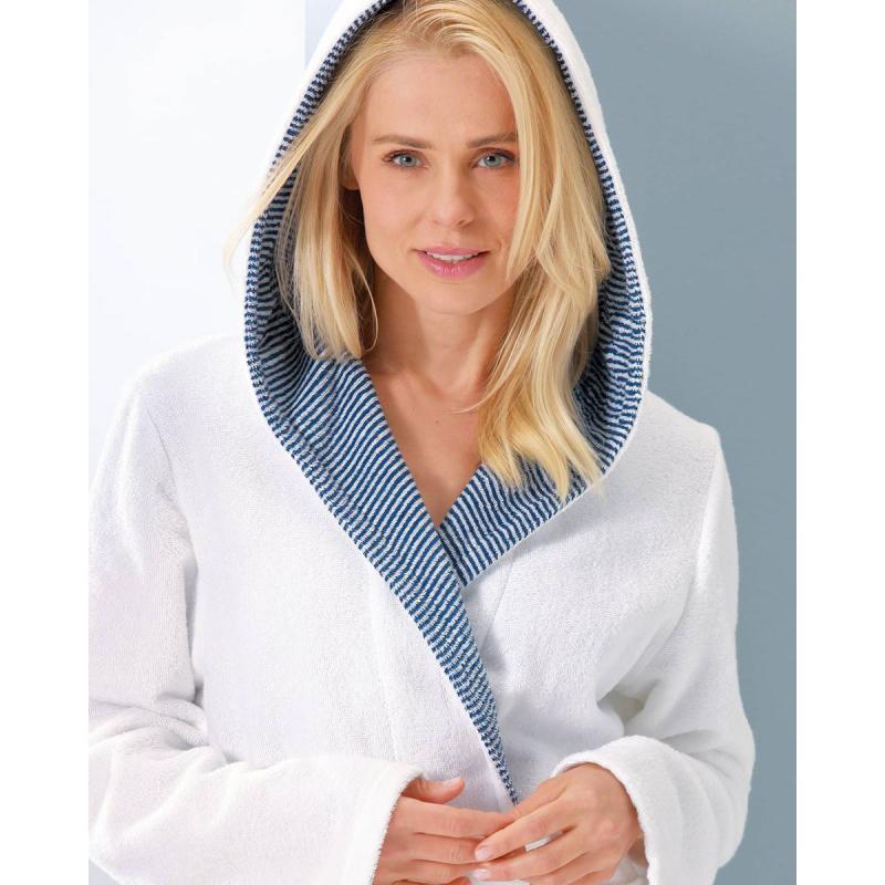 Morgonrock dam med huva 4345-601 är en attraktiv lång morgonrock i modern men samtidigt tidlös design. En supermjuk och mysig badrock för kvinnor med en härlig huva som är tillverkad i Tyskland av Cawö av fluffig mjuk frotté av 100 % högkvalitativ bomull. En enkel morgonrock med raffinerad, färgad huva med praktiskt midjebälte för att kunna framhäva midjeformerna efter önskemål. Den är lätt att tvätta och lämpar sig för torktumling.
