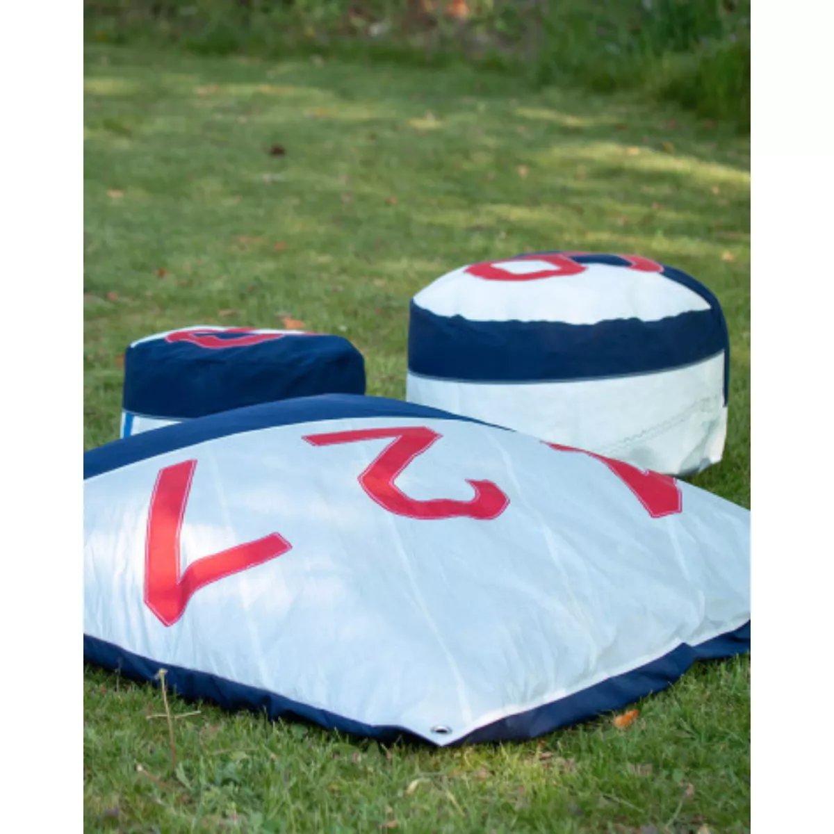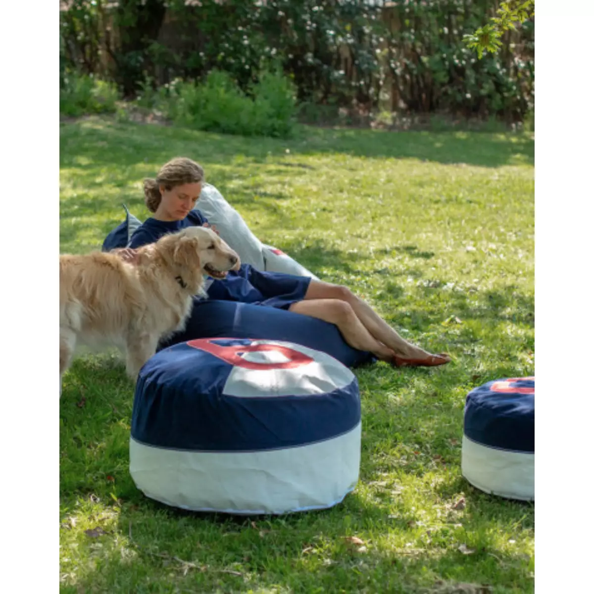 Nautisk sittpuff av återvunnet segel – Maxi sittsäck 427 – marinblå & röd av segelduk