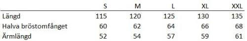 Storlek: S, M, L and XL - Längd före tvätt 115 to 125cm