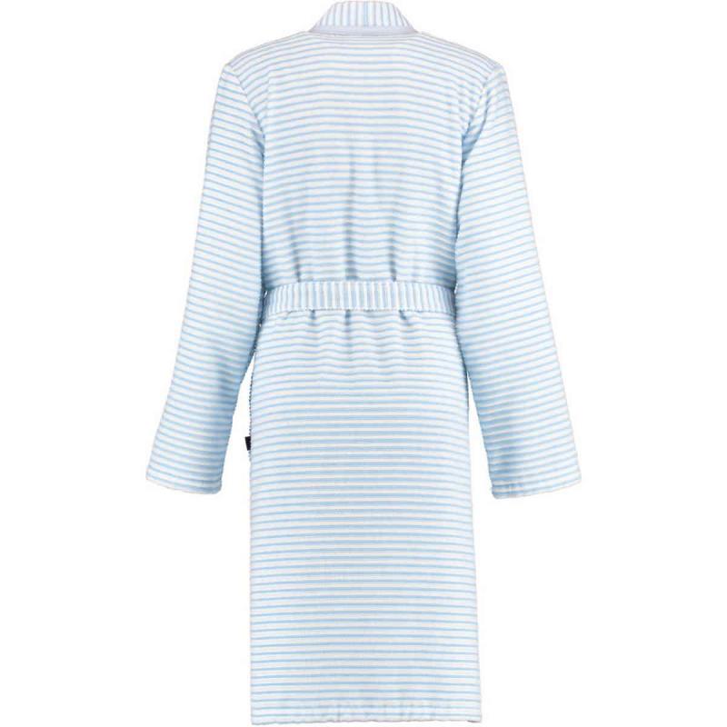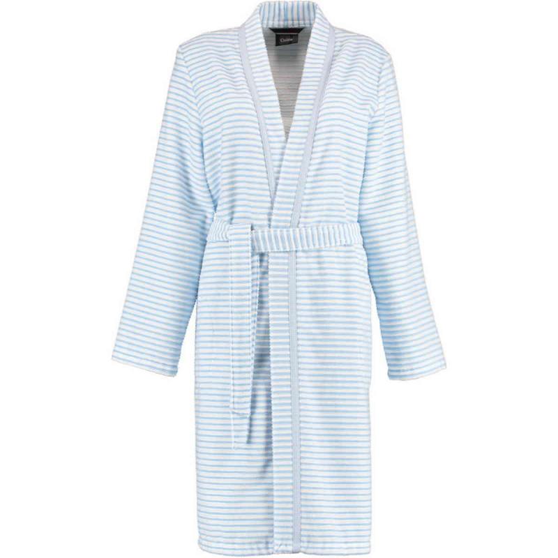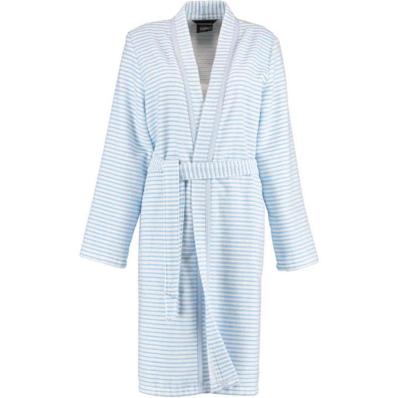 Denna härliga ljust blå morgonrocken 1214-11 från Cawö är tillverkad i extra lätt velourkvalitet av 100% ren bomull. En attraktiv kort kimonomodell som formar sig fint efter kroppen. Den har ett praktiskt bälte för reglering av bredden och försiktigt framhäver den kvinnliga silhuetten. Den är lätt att tvätta och lämplig för torktumlare, den höga kvalitén gör morgonrocken extremt hållbar och den behåller sin form efter många tvättar.